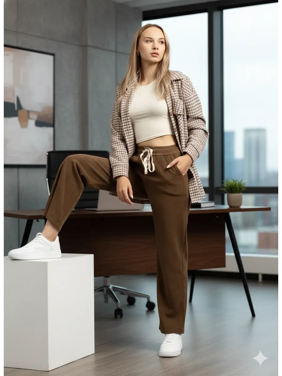 Женские брюки для любого случая — стиль, комфорт и тренды в одном месте. В нашем каталоге вы найдёте модные женские брюки для учёбы, работы, прогулок и отдыха. Мы предлагаем широкий выбор фасонов: Брюки палаццо — легкие, свободные и элегантные, подходят для офиса и вечерних выходов. Брюки клеш от бедра — эффектный силуэт и возвращение модного тренда. Офисные брюки на резинке — идеальное сочетание комфорта и делового стиля. Школьные брюки для девочек и подростков — практичные модели, сохраняющие аккуратный вид весь день. Брюки больших размеров (plus size) — современные силуэты и комфортная посадка для любого типа фигуры. Тёплые вельветовые брюки — уютный вариант для осени и зимы. Трикотажные и спортивные широкие штаны — универсальный выбор для дома, прогулок и тренировок. Наш ассортимент включает практичные материалы — трикотаж, вельвет, плотные ткани, которые сохраняют форму и стиль даже при активной носке. Вы можете купить женские брюки онлайн с быстрой доставкой и обновить гардероб без лишних хлопот. Женские брюки на каждый день, для офиса, школы и отдыха — выбирайте свой идеальный фасон, создавайте стильные образы и наслаждайтесь комфортом в любую погоду.