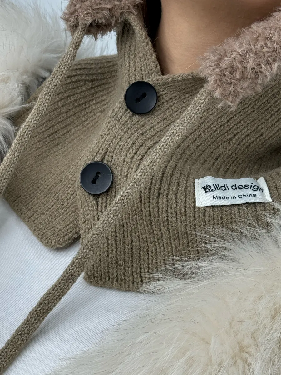 Капор женский зимний с манишкой на пуговицах — для максимальной защиты шеи;