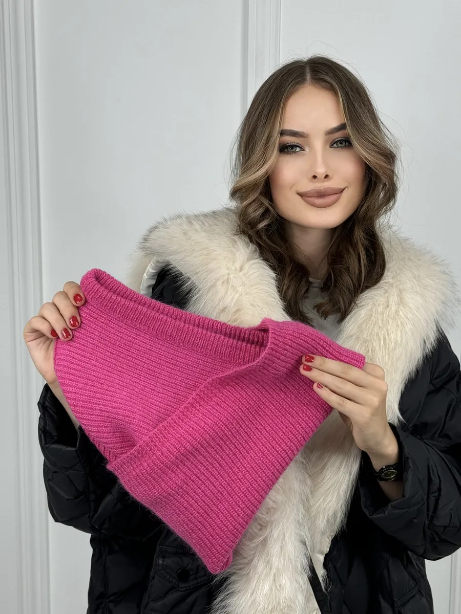 • Модный дизайн — подходит под пальто, куртку, пуховик и даже под шубу. Подчёркивает женственность и добавляет уюта каждому образу.