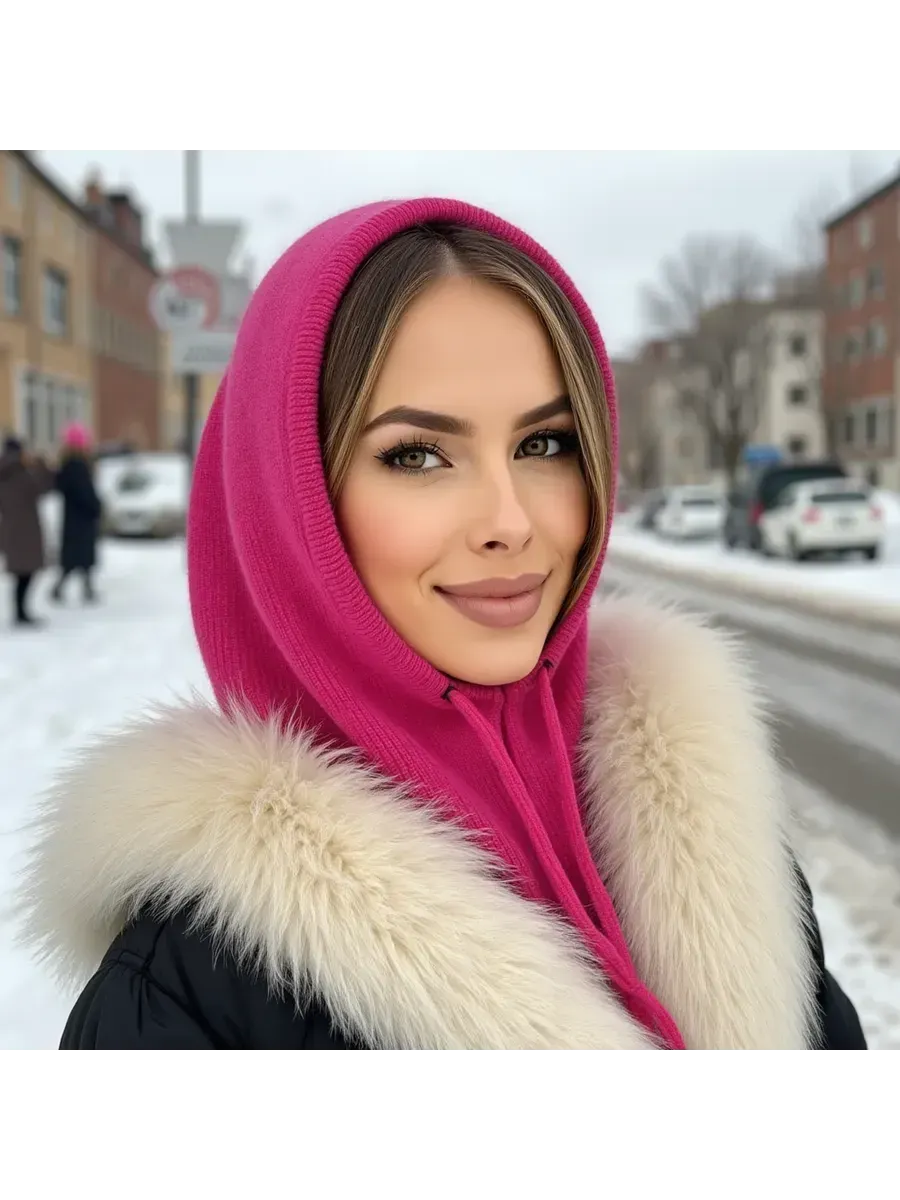 • Универсальный фасон 3-в-1 — сочетает в себе шапку, шарф и манишку, закрывая голову, шею и грудь от холодного ветра.