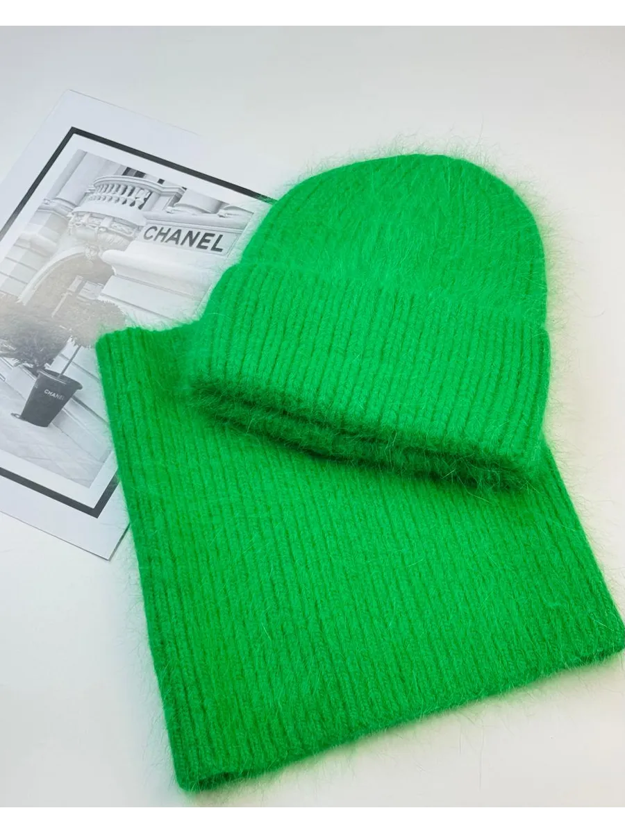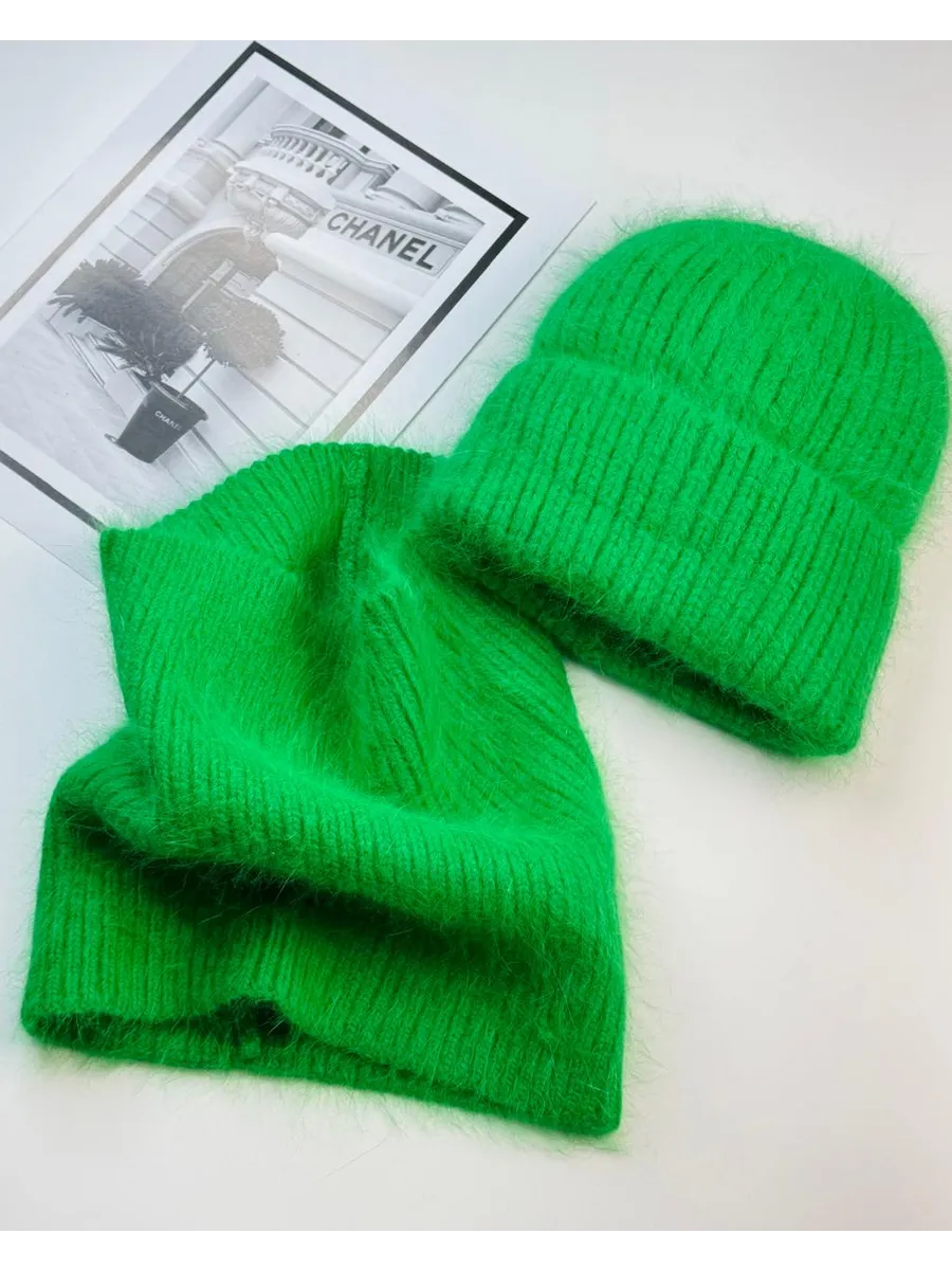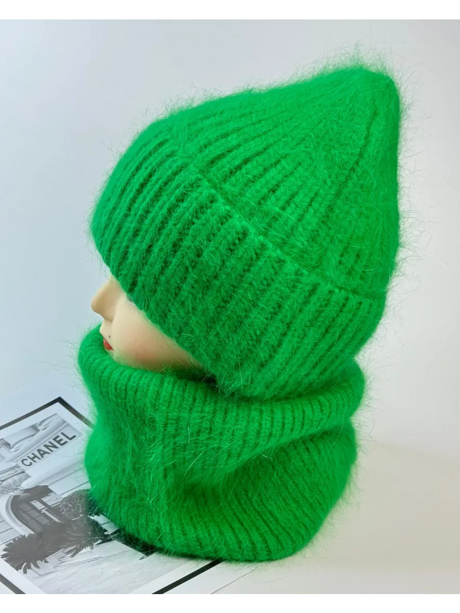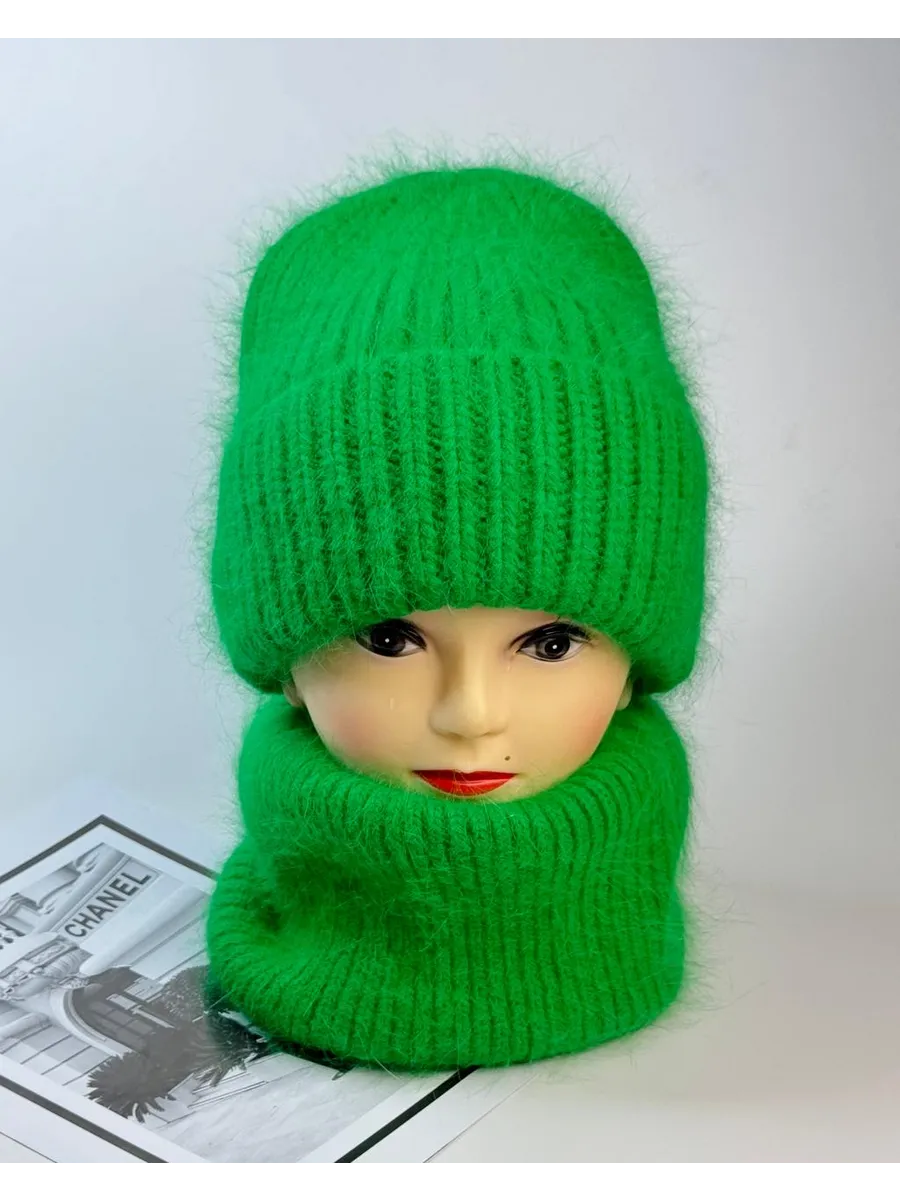 шапка зимняя вязаная модная теплая и снуд манишка ангора