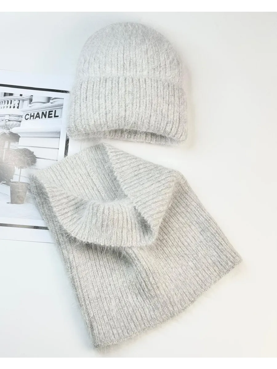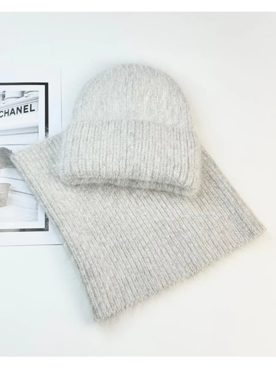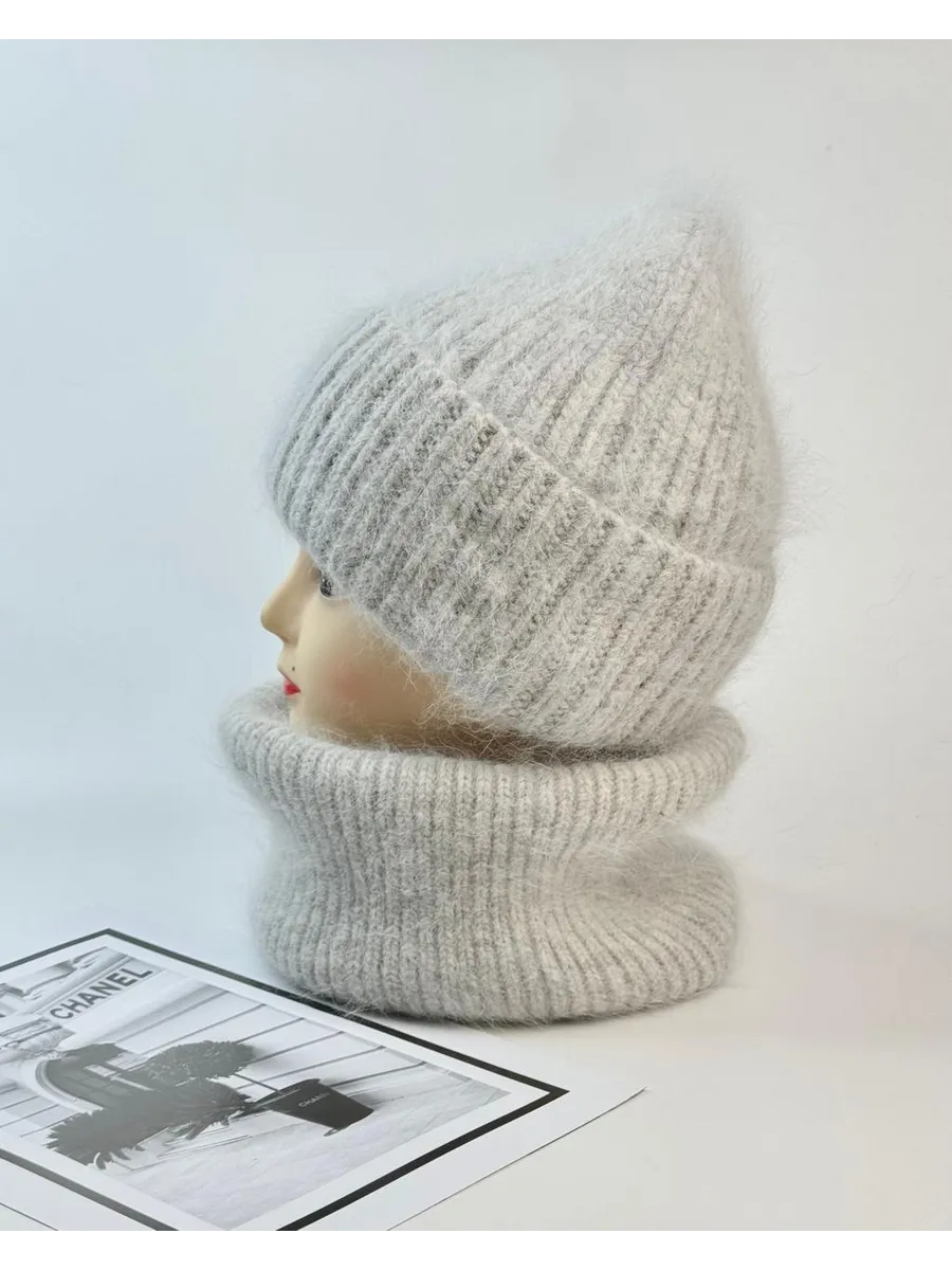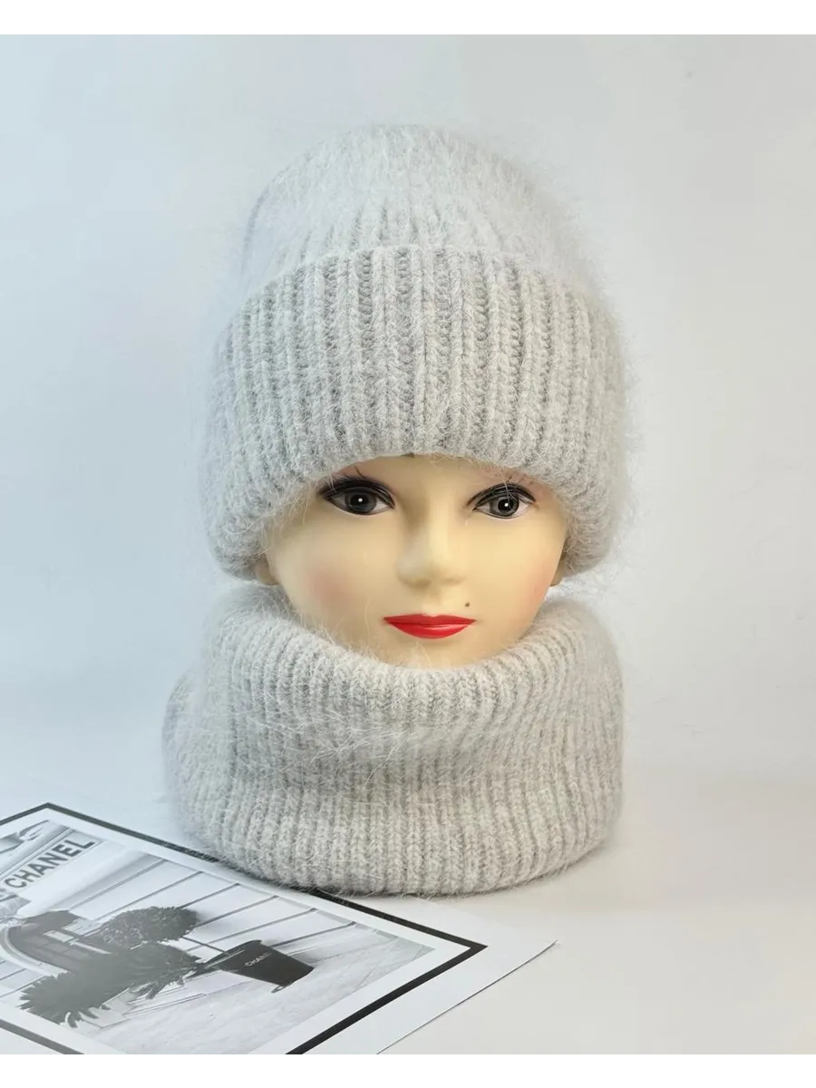 шапка зимняя вязаная модная теплая и снуд манишка ангора
