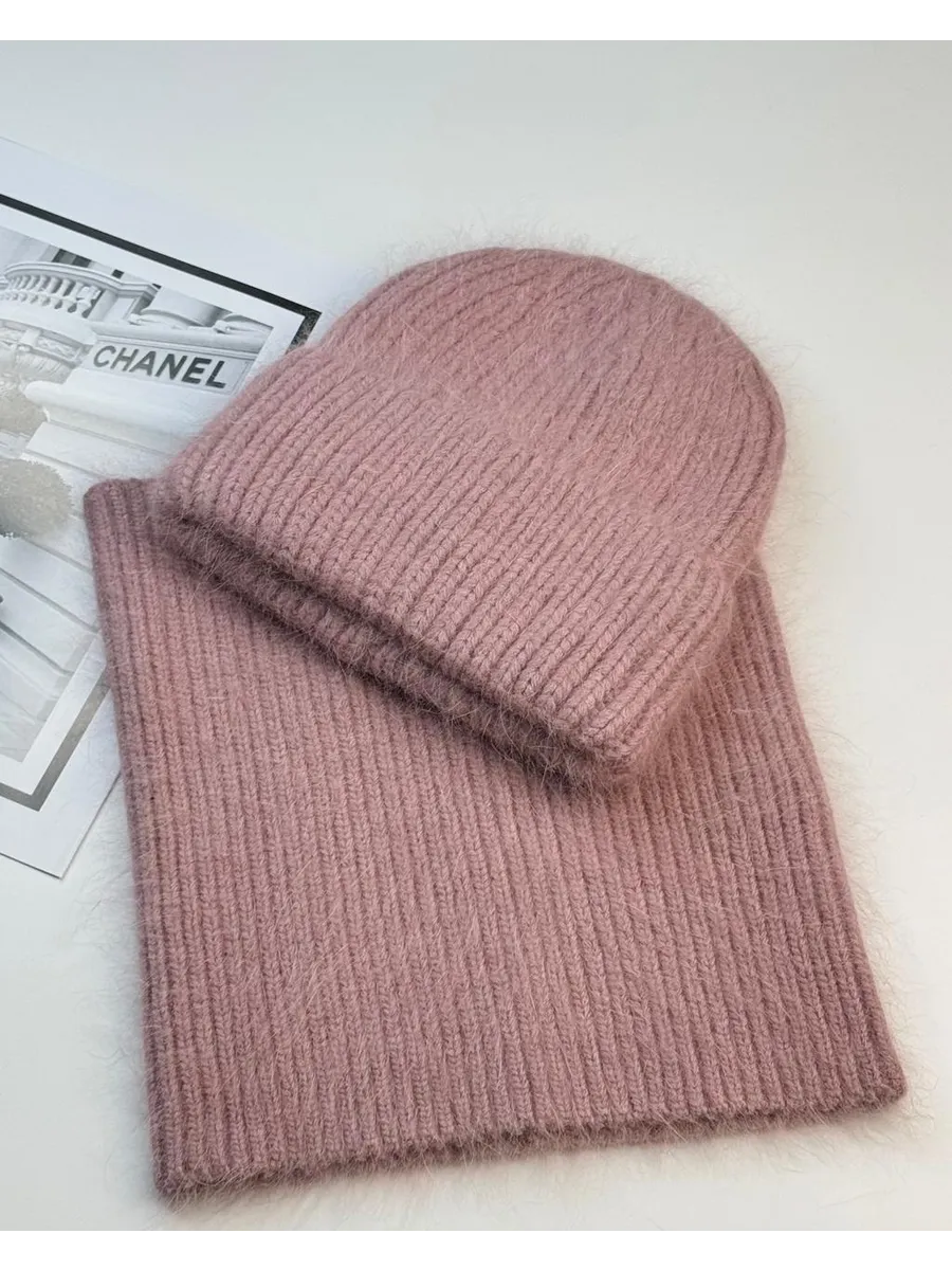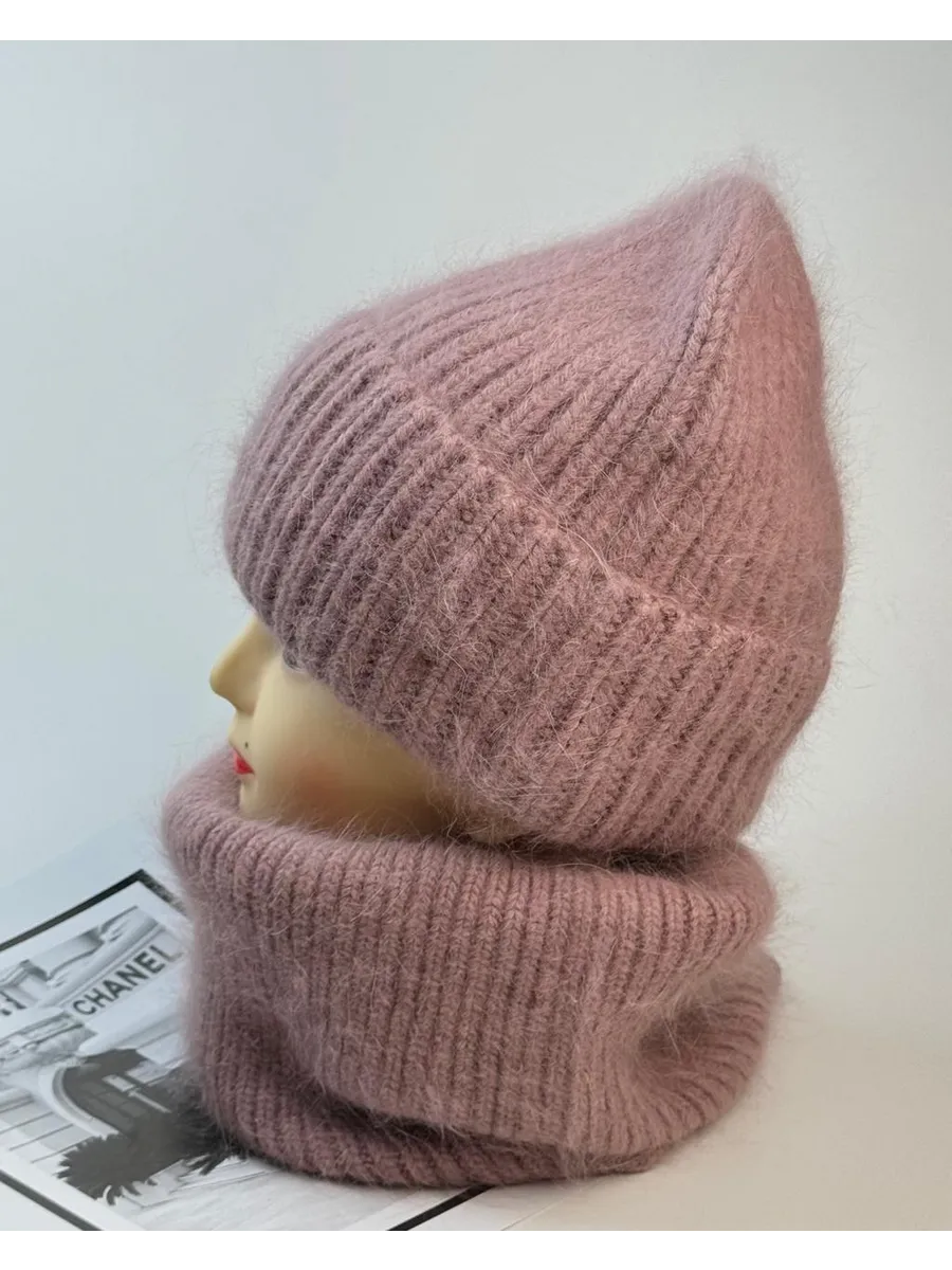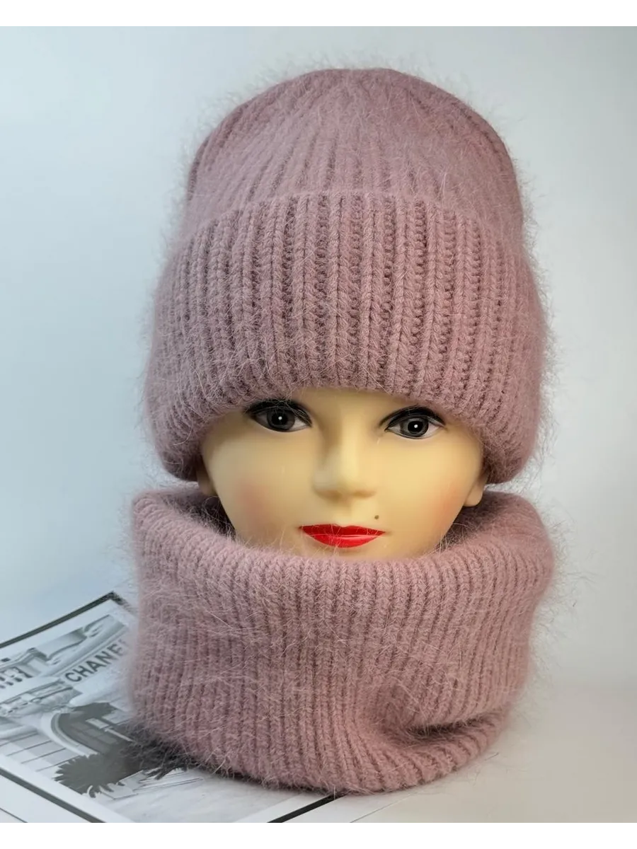 шапка зимняя вязаная модная теплая и снуд манишка ангора
