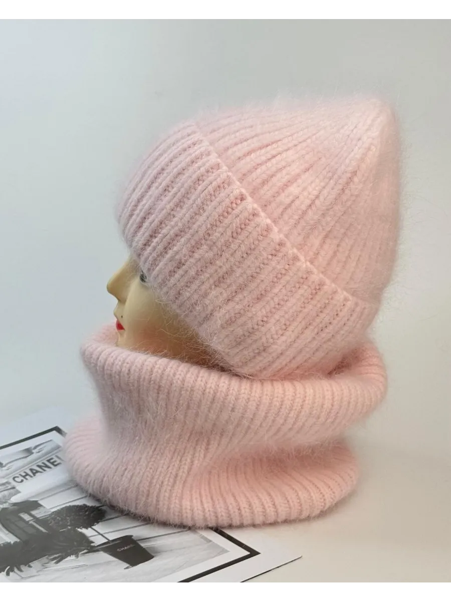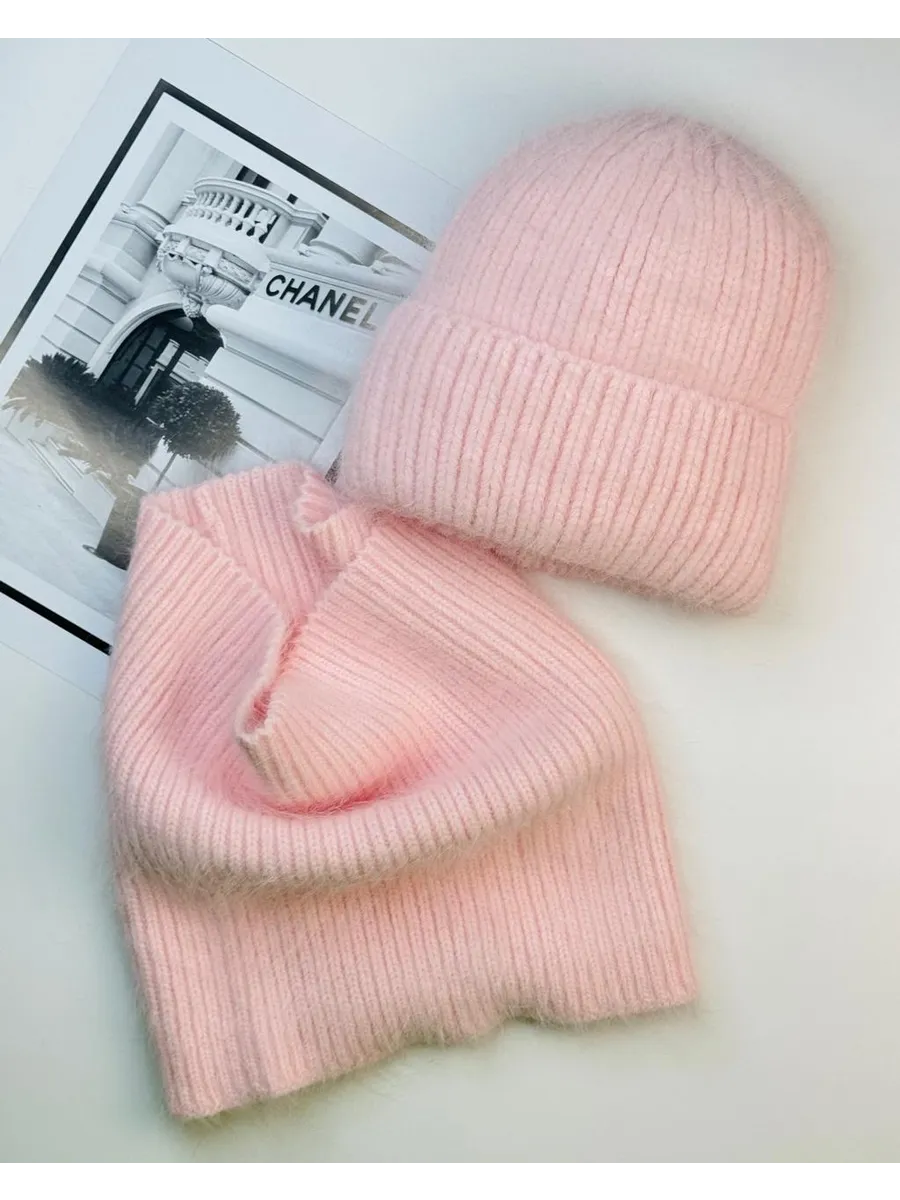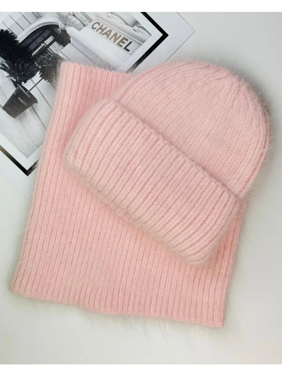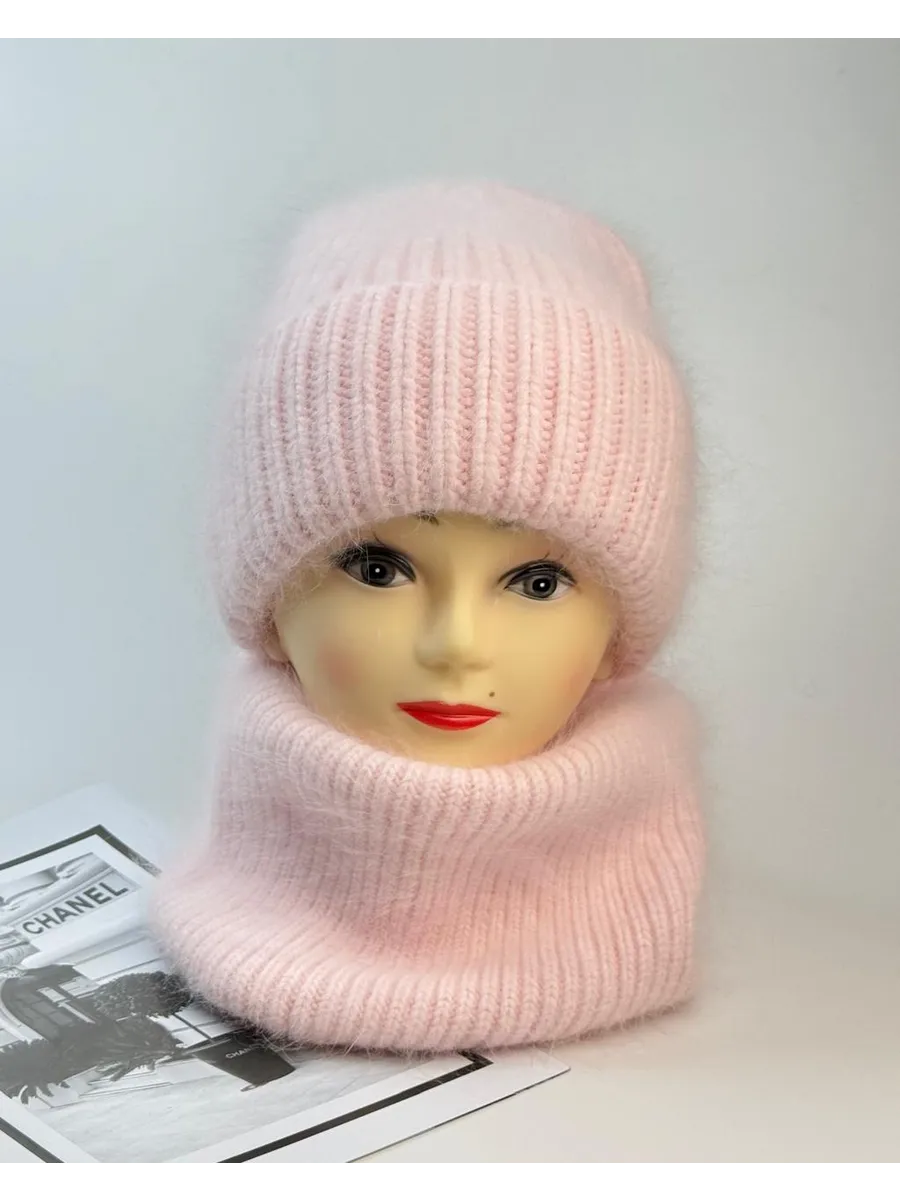 шапка зимняя вязаная модная теплая и снуд манишка ангора
