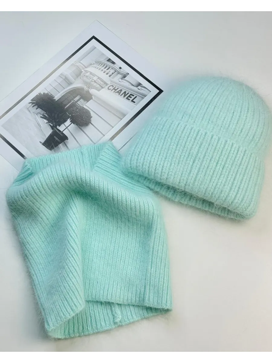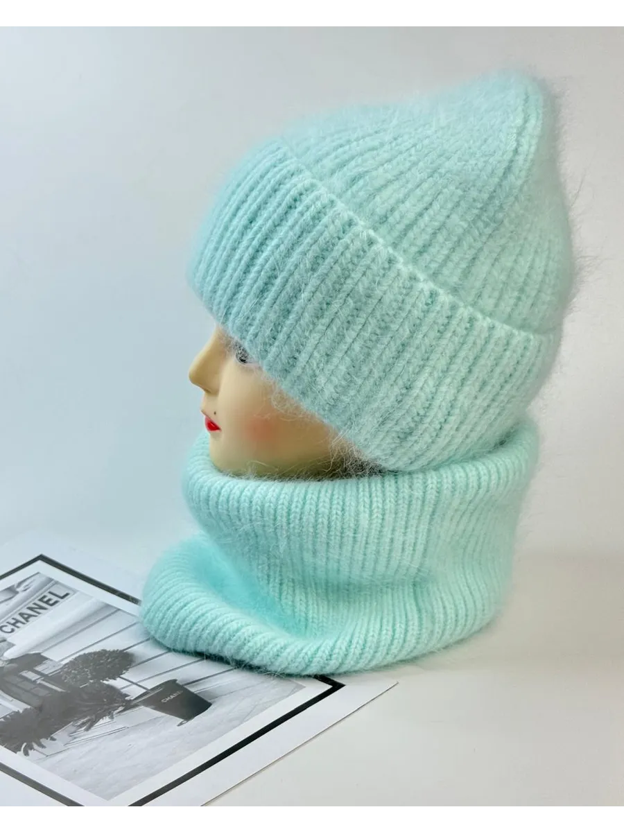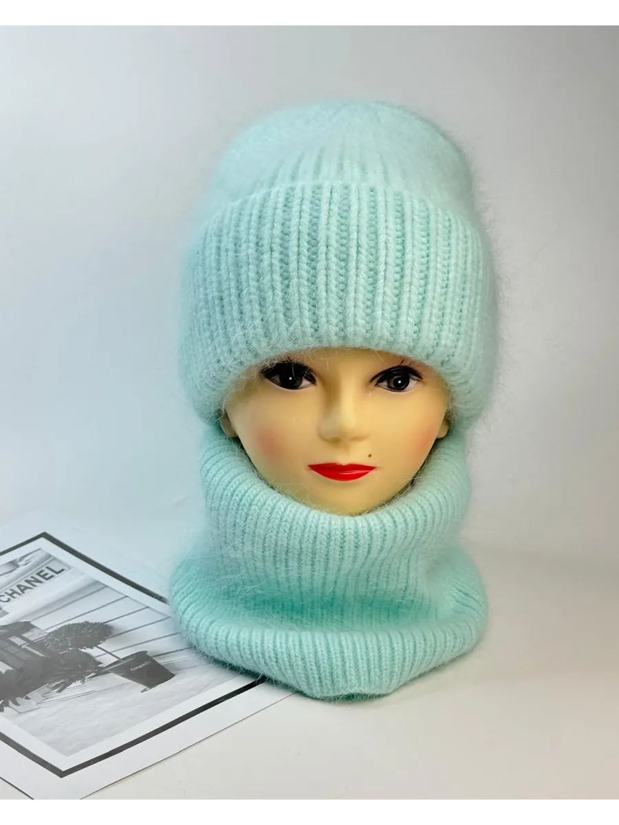 шапка зимняя вязаная модная теплая и снуд манишка ангора