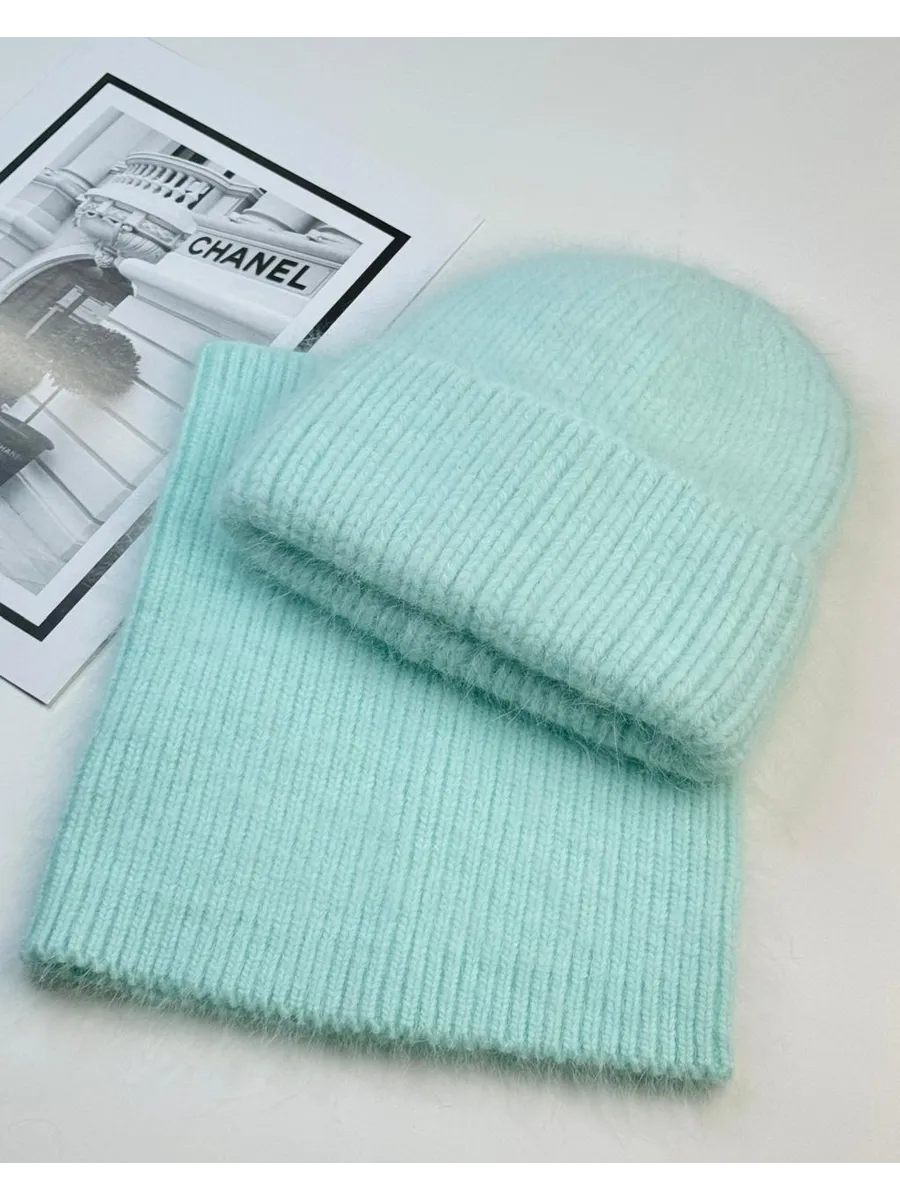 шапка зимняя ангорка и снуд пушистый,