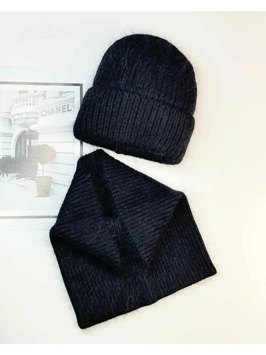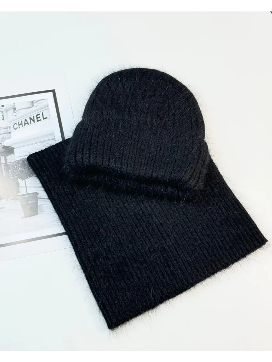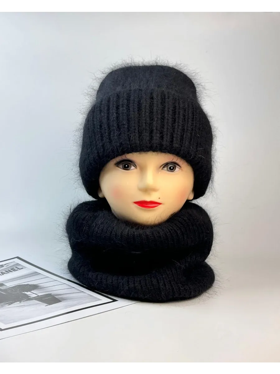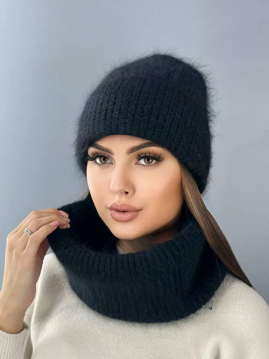 шапка зимняя вязаная модная теплая и снуд манишка ангора
