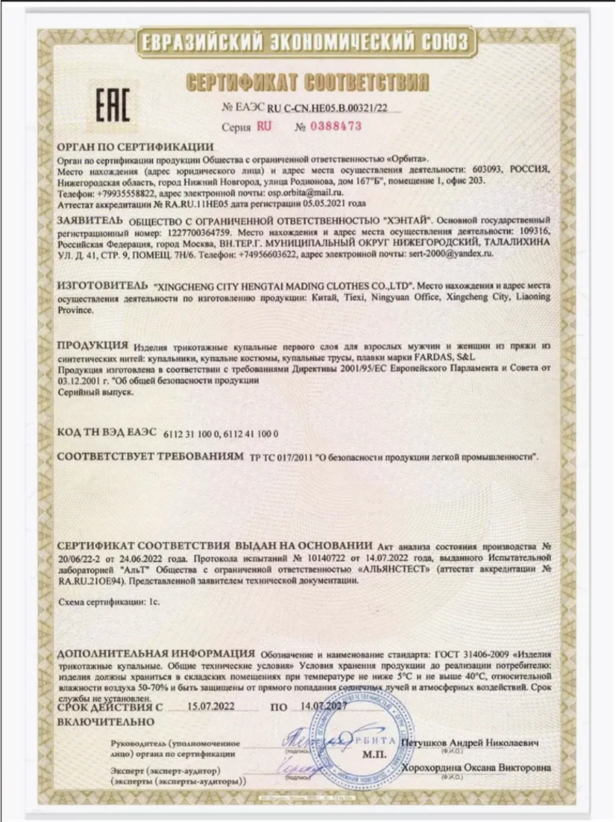 Назначение белья/купальника