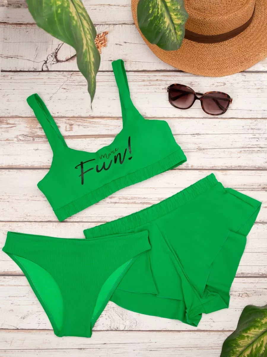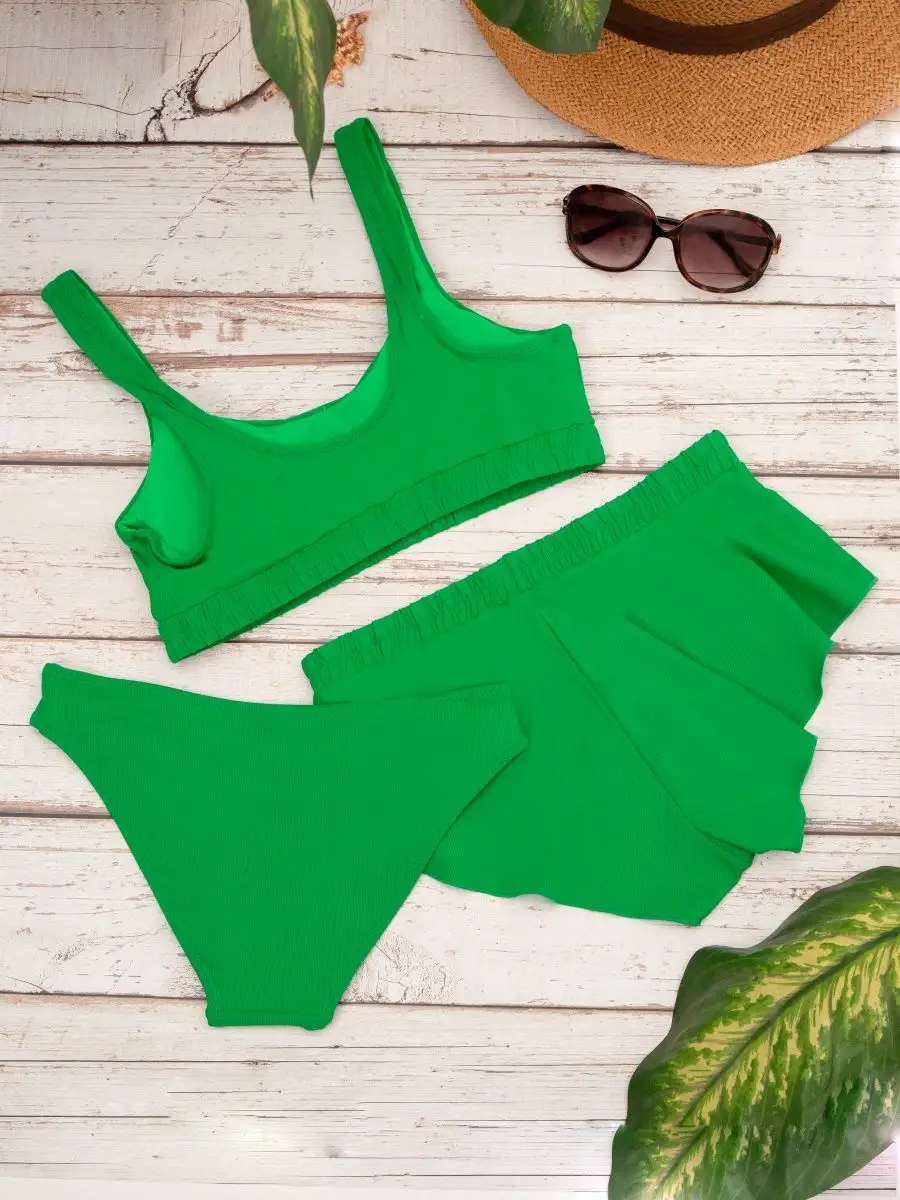 Женский купальник 3 в 1 с шортами и топом Prey From God — универсальный комплект для плавания, моря, бассейна и активного отдыха. В набор входят три предмета: топ, шорты и классические трусики. Можно носить вместе или по отдельности, создавая удобные образы для пляжа, спорта или отдыха.