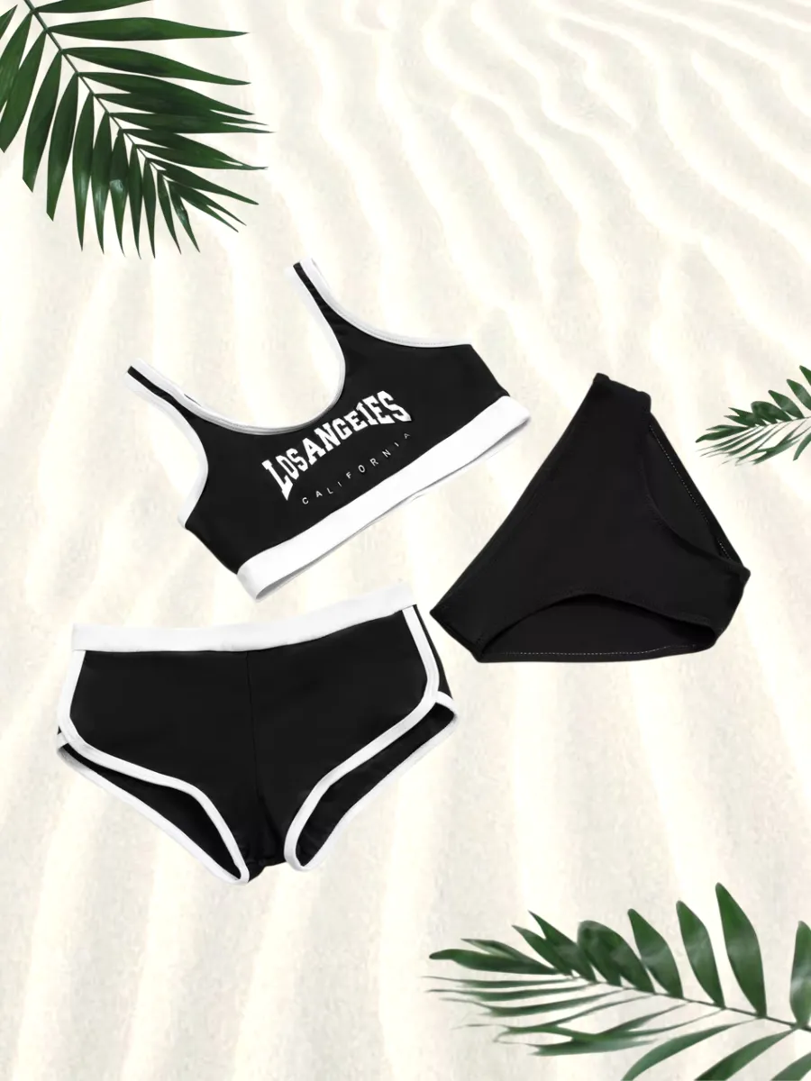 купальник раздельный для девочек с шортами подростковый,