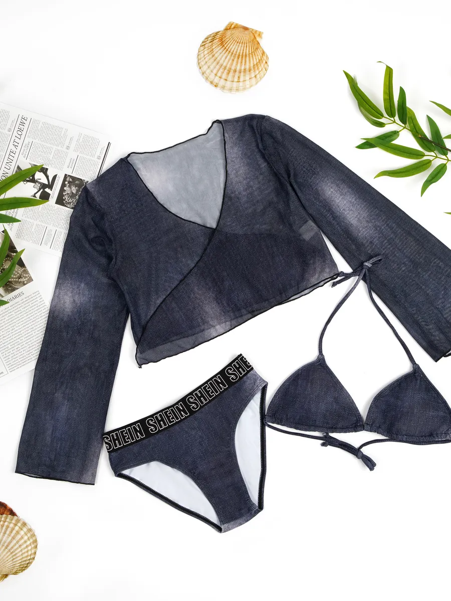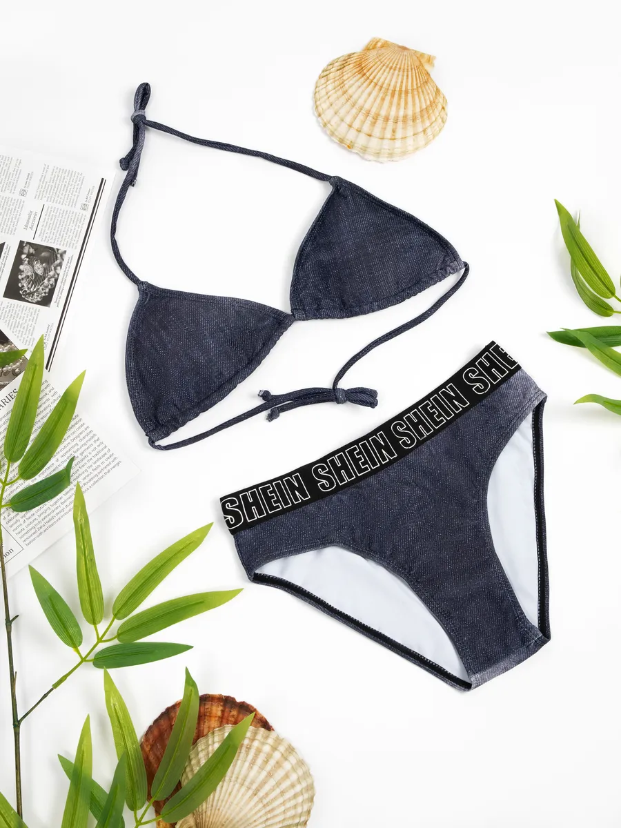 купальник раздельный пляжный джинсовый