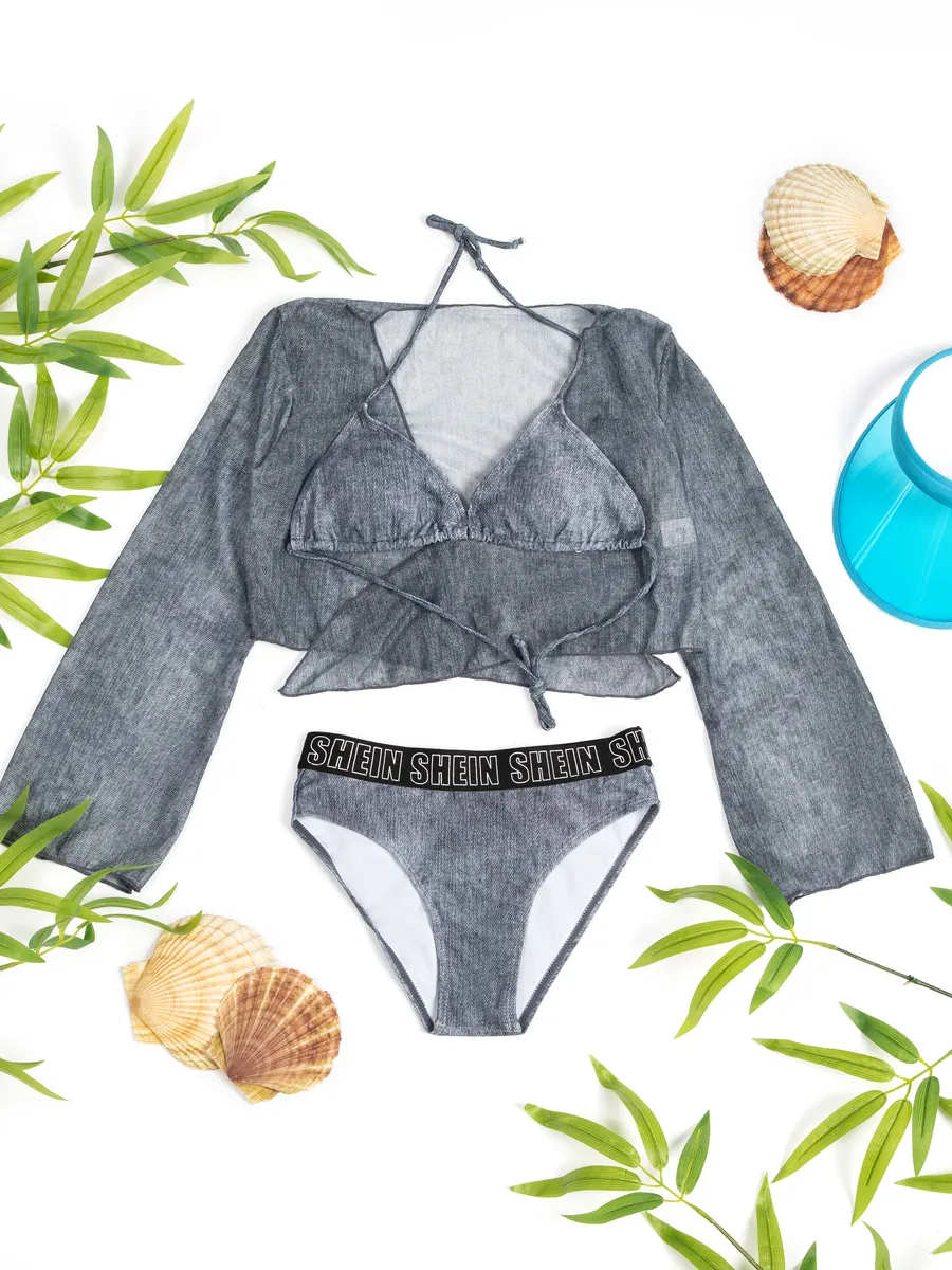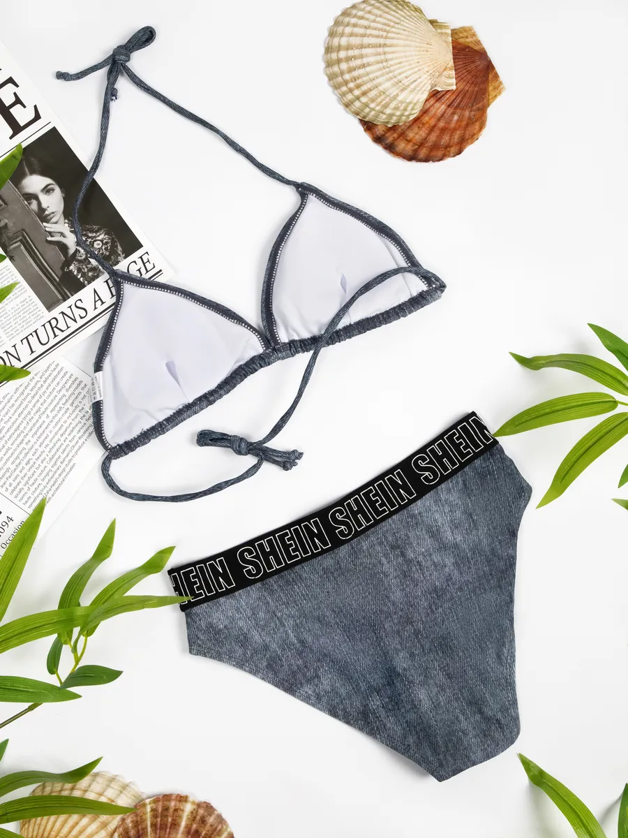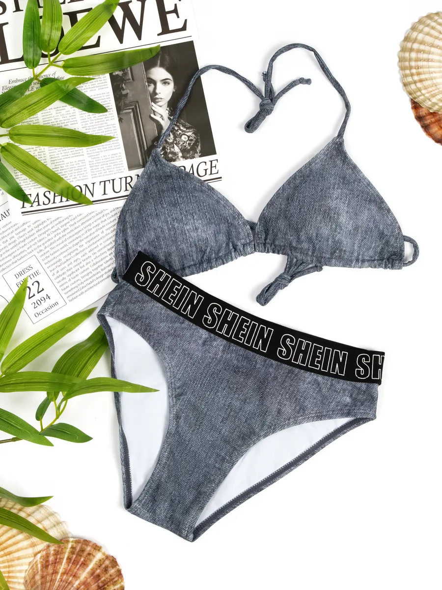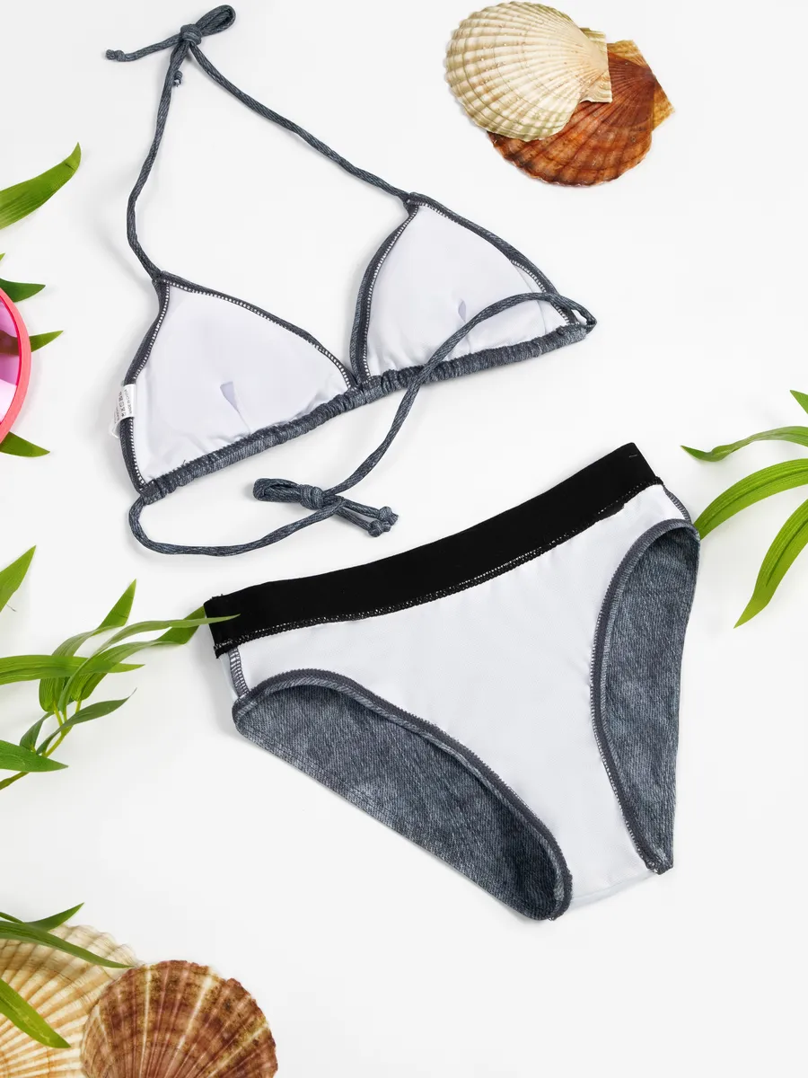 купальник раздельный пляжный джинсовый