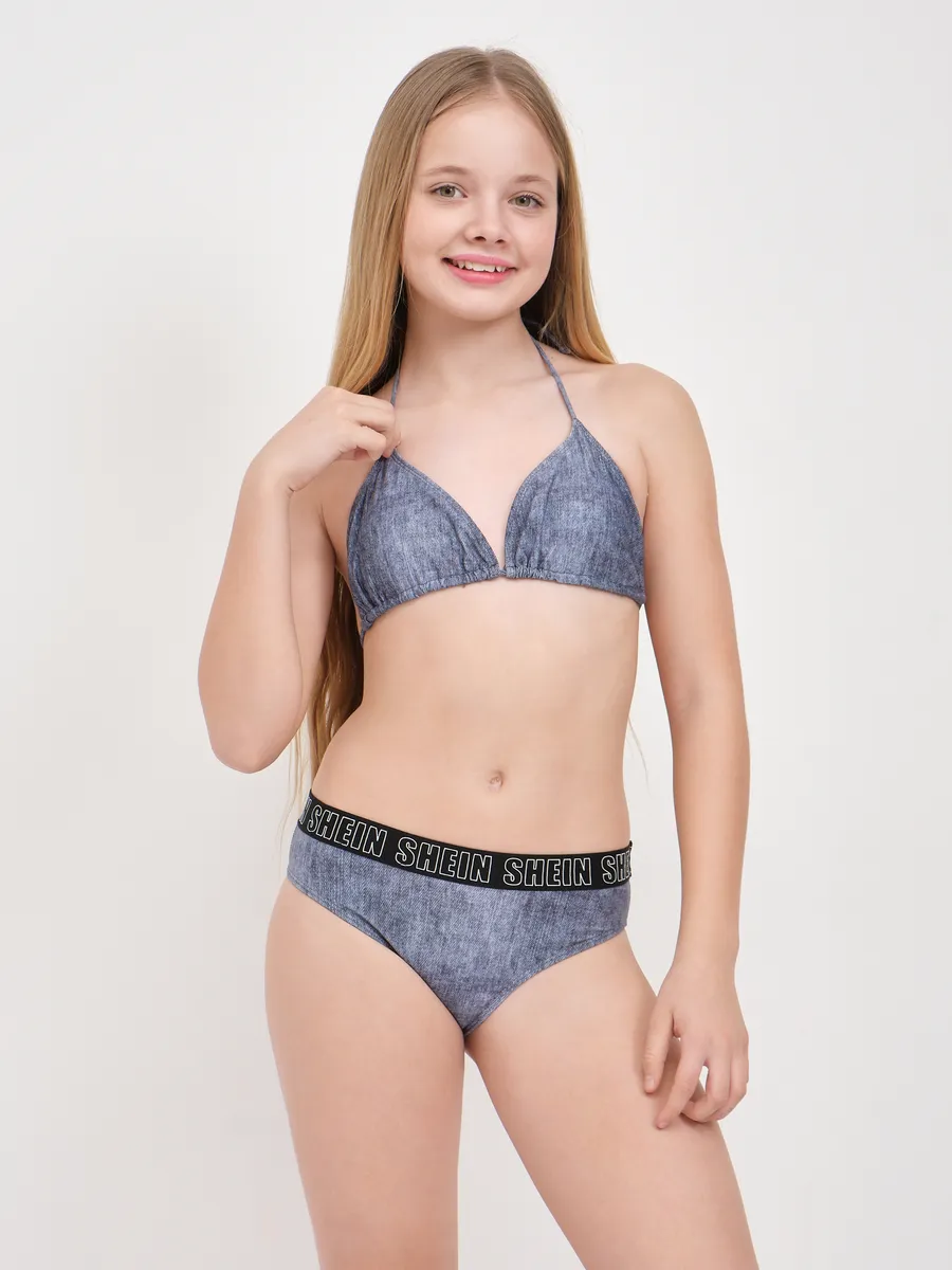 купальный костюм для девочек джинсовый,