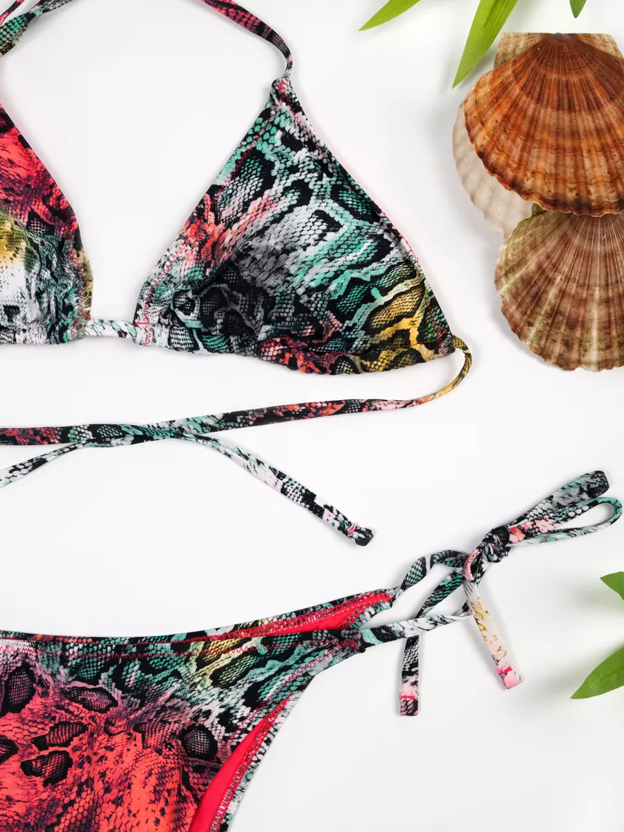 Купальник раздельный на завязках позволяет регулировать размер и комфортно сидит на любой фигуре.