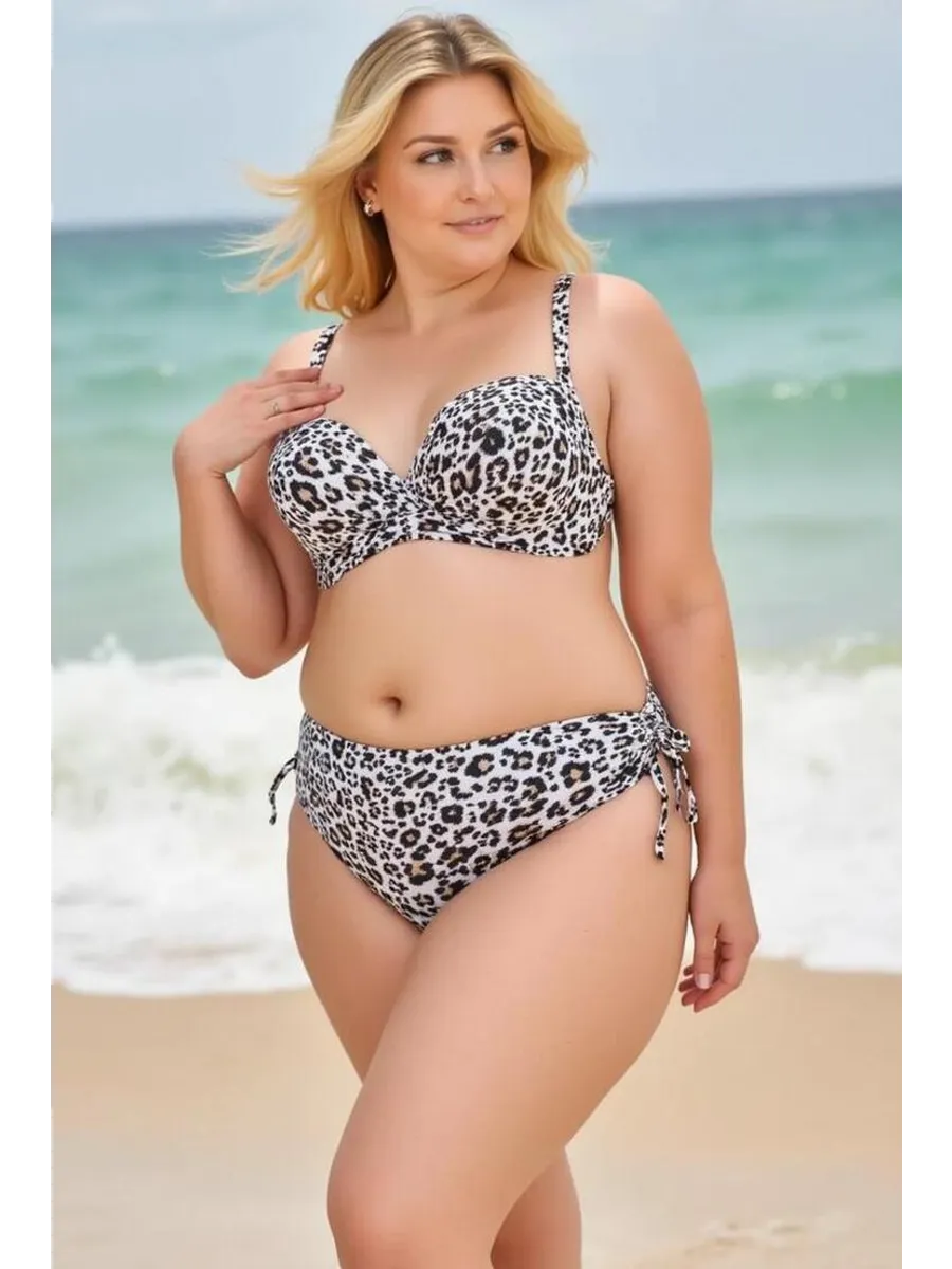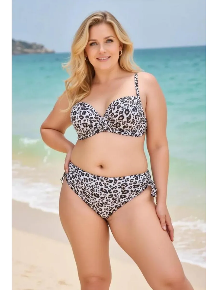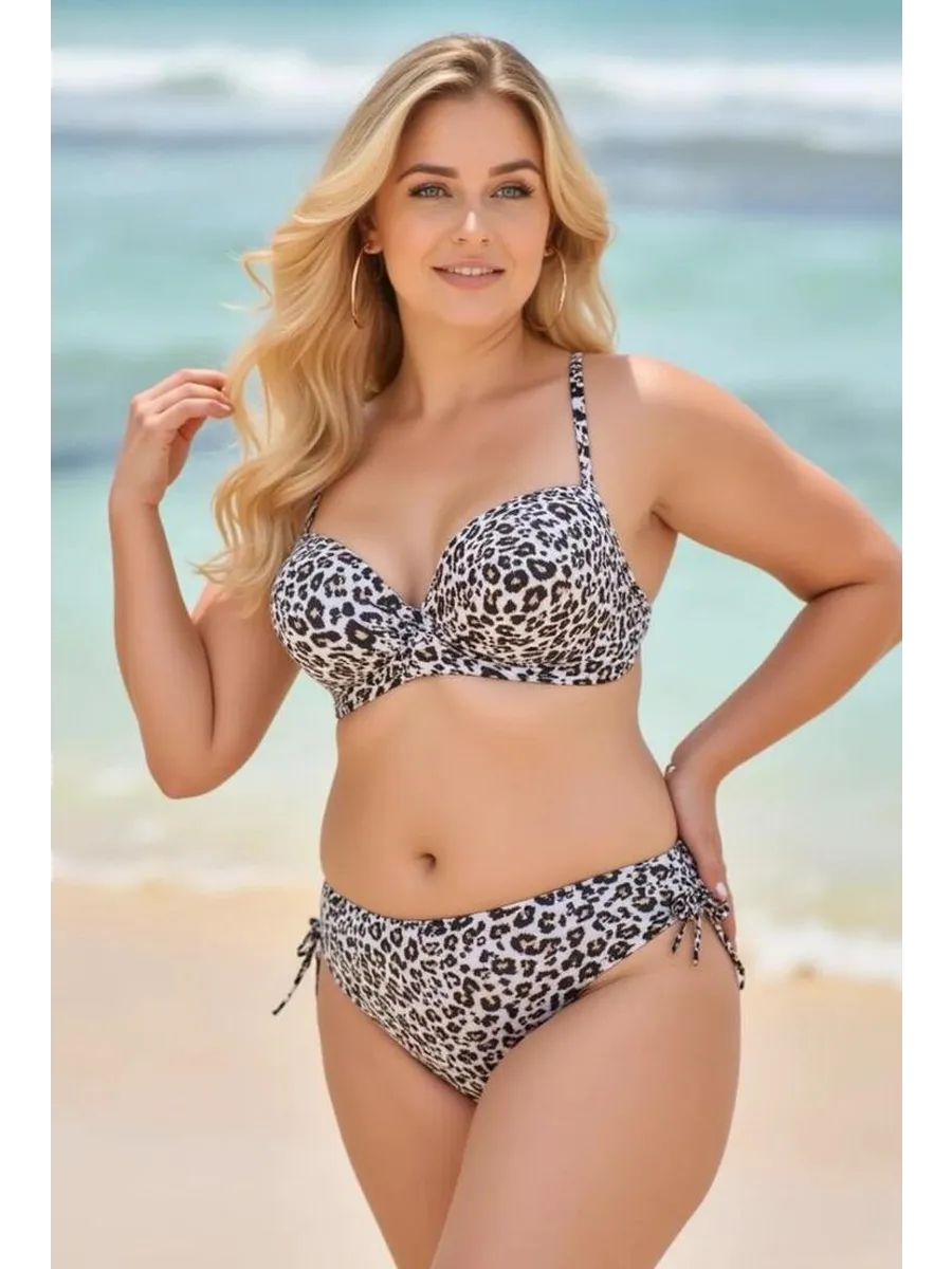 Купальник раздельный с высокой посадкой трусов обеспечивает комфорт и уверенность в движениях, а также придает стройность вашей фигуре. Леопардовый принт этого купальника раздельного больших размеров придаст вам загадочности и страсти на пляже.