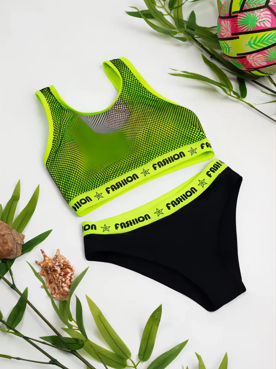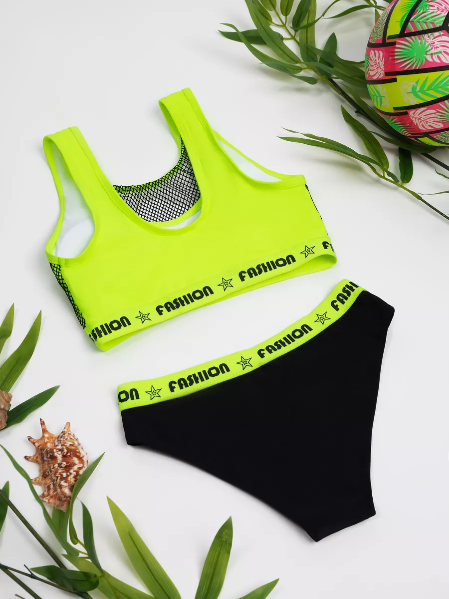 Ваш активный образ жизни требует особого внимания к деталям, поэтому представляем стильный и функциональный раздельный спортивный купальник для девочек-подростков, состоящий из верха-топ с элегантной сетчатой вставкой и ультрамодных плавок с высокой посадкой, создающих красивую линию ног и обеспечивающих максимальный комфорт и поддержку.