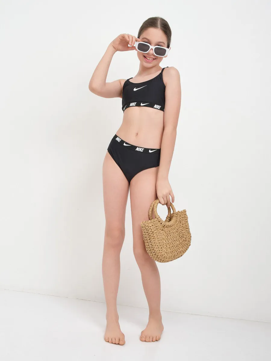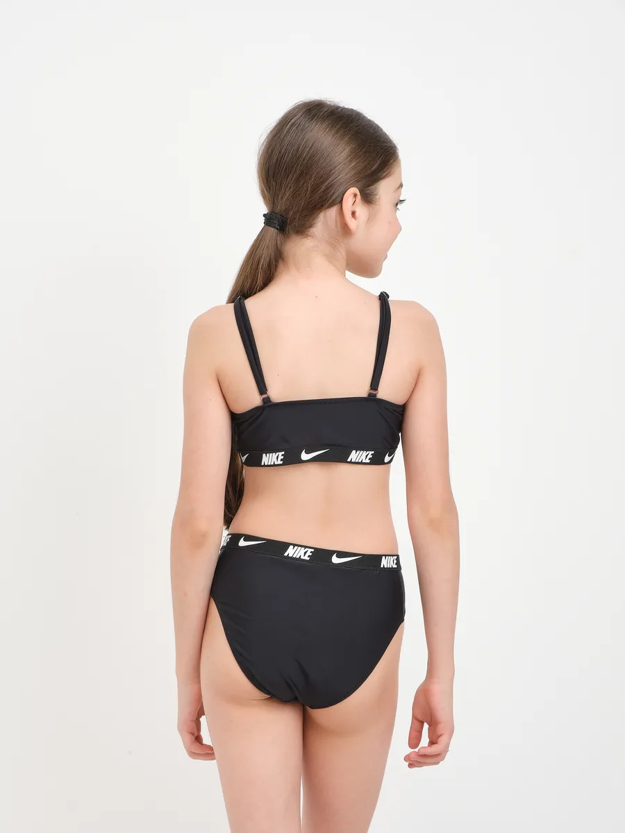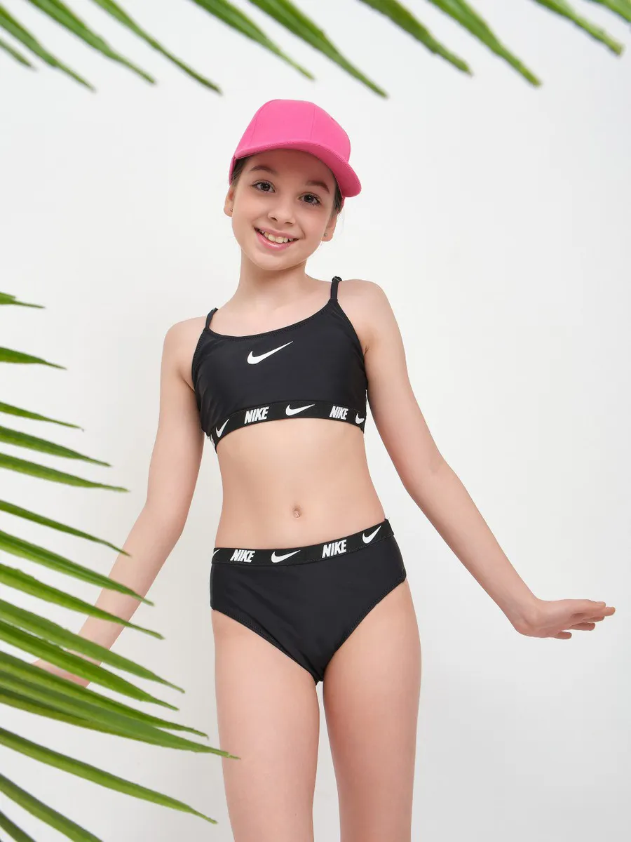 Удобный верх выполнен в виде бра с широкими бретельками, обеспечивающими надежную поддержку. Модель без косточек и с мягкой внутренней подкладкой, благодаря которой он прекрасно подойдет как девочке-подростку от пяти лет, так и взрослой женщине. Этот лиф не похож на привычные лифчики, обеспечивая максимальный комфорт и не уступая по поддержке даже закрытому варианту. Внутри предусмотрены комфортные чашечками и при желании можно использовать дополнительную чашкой для усиления эффекта. На топе расположен знаменитый логотип, а на резинке верха и трусов повторяется название марки, подчеркивая принадлежность к премиальному бренду.