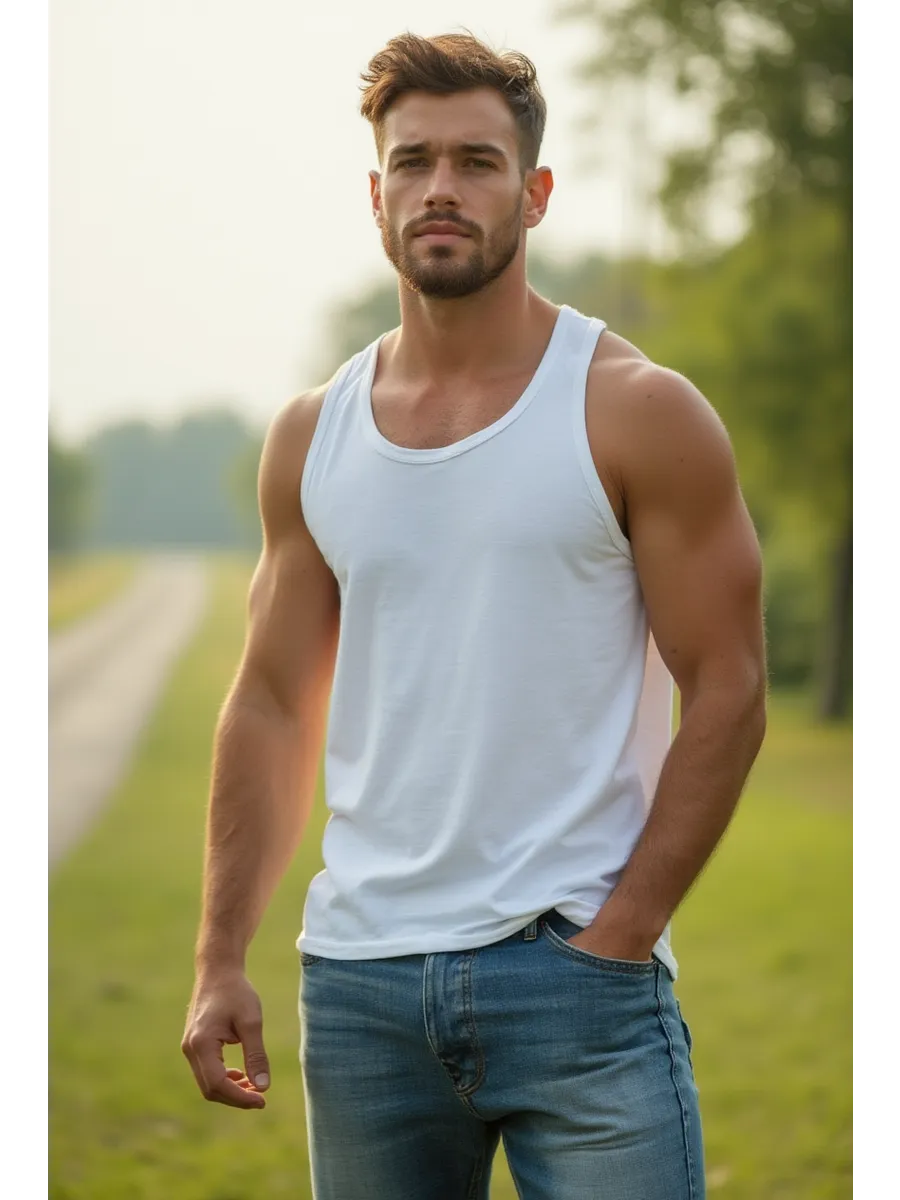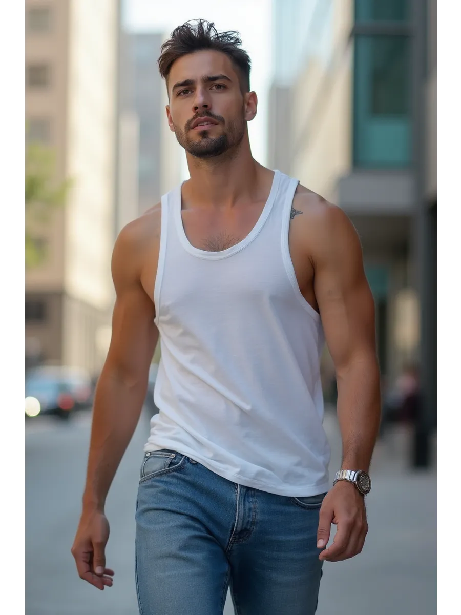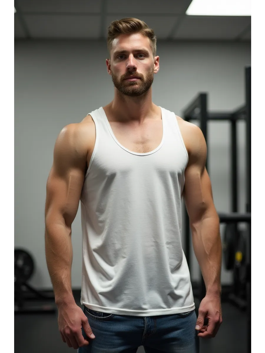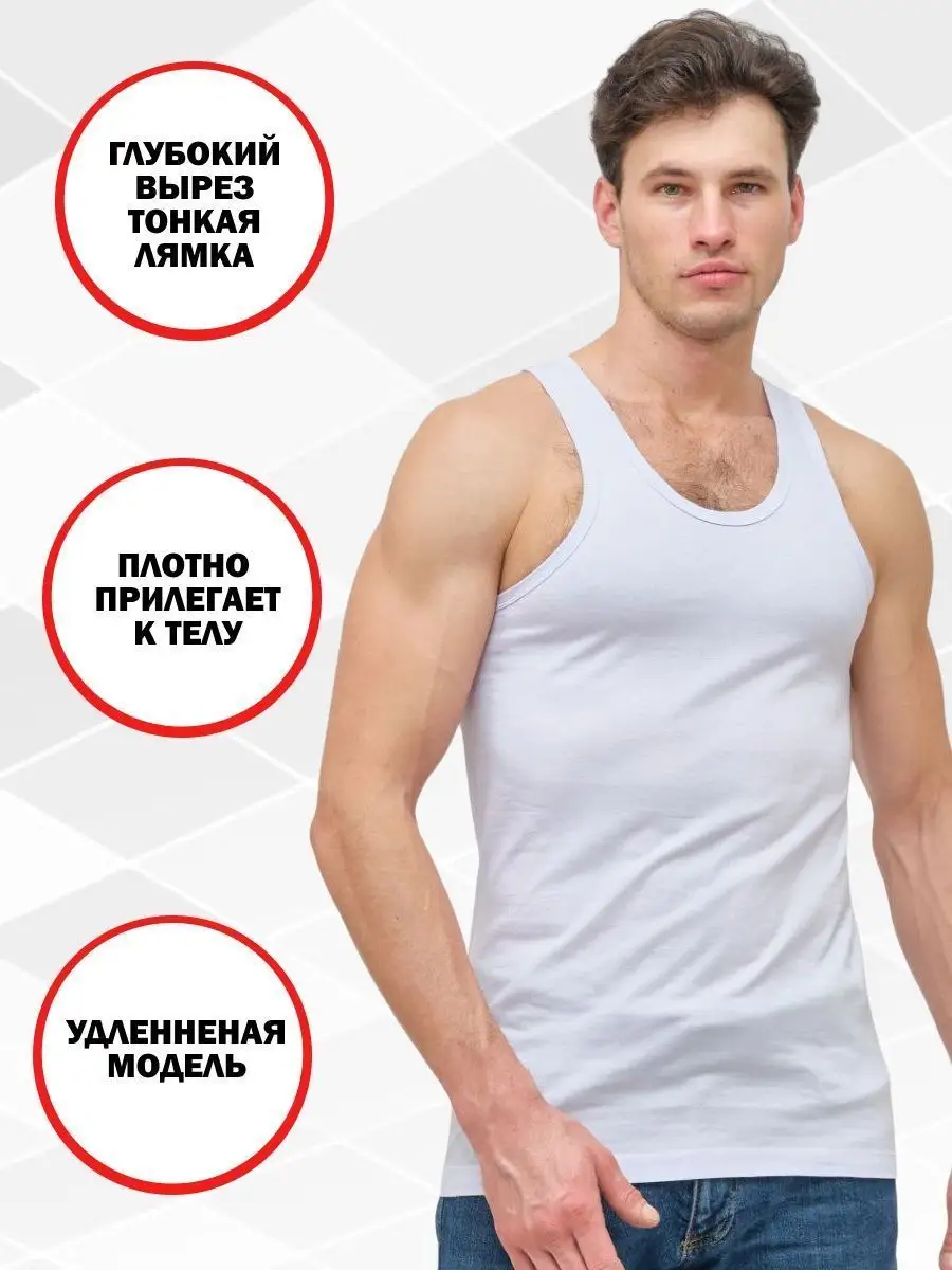 Для спорта отлично подойдёт майка-борцовка — подчеркнёт мускулатуру и обеспечит свободу движений.