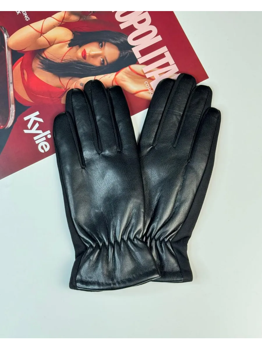 перчатки кожаные с мехом теплые на резинке
