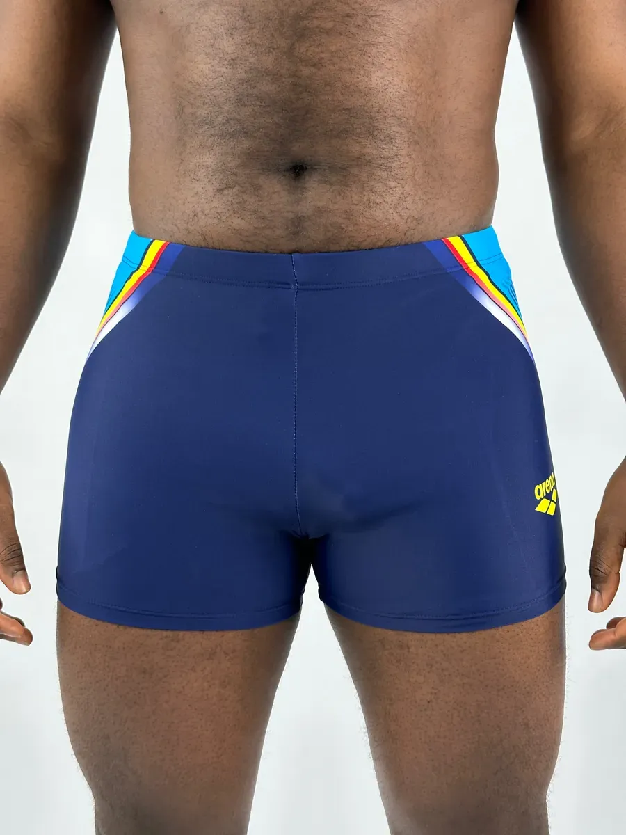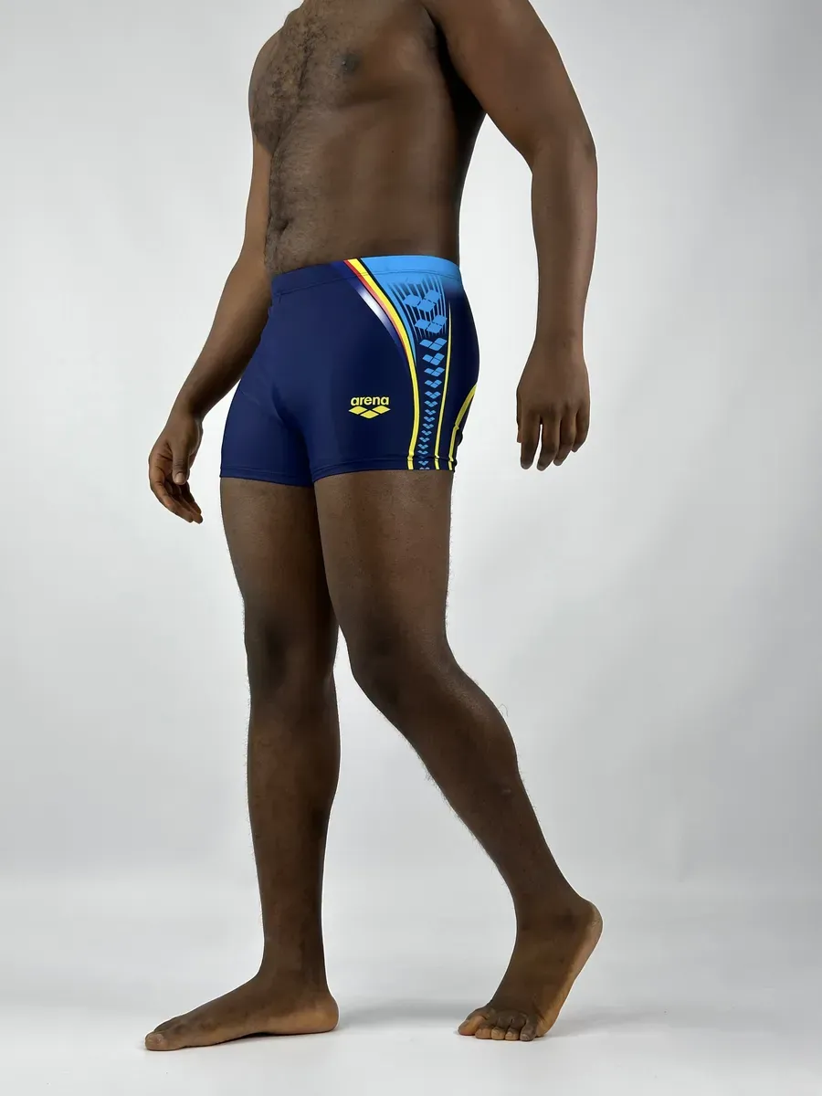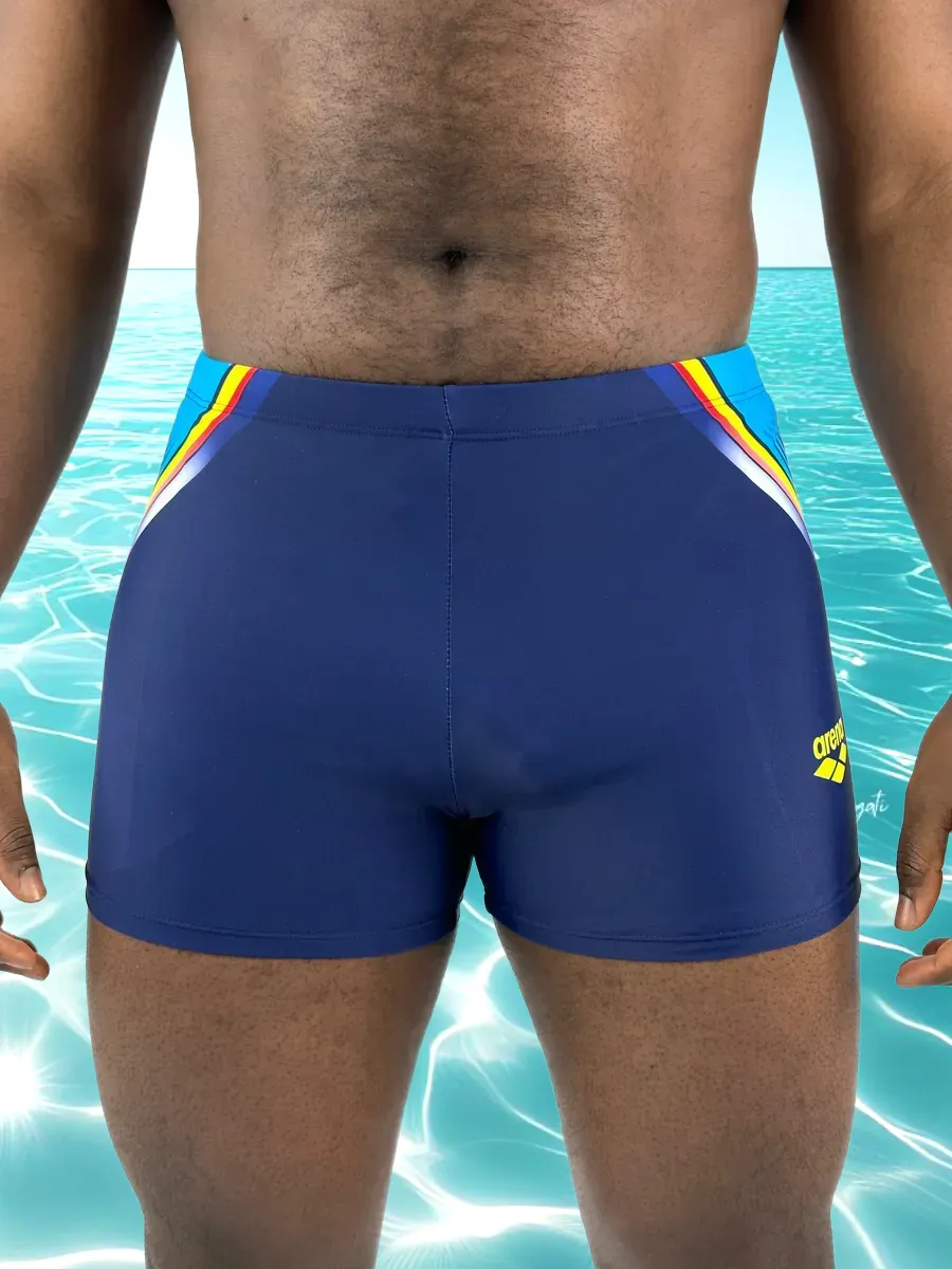 Представляем мужские плавки-боксеры arena – идеальный выбор для всех, кто ценит комфорт и стиль. Эти купальные трусы выполнены в глубоком синем цвете, эффектно отличающемся от классических черных моделей, и украшены ярким принтом сбоку. Стильный принт с элементами логотипа Арена добавляет динамичности, превращая их из однотонных шорт в спортивные плавательные боксеры.