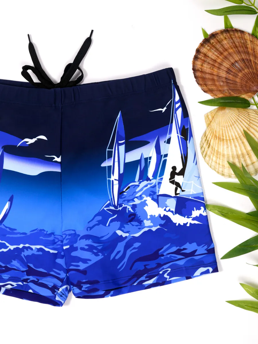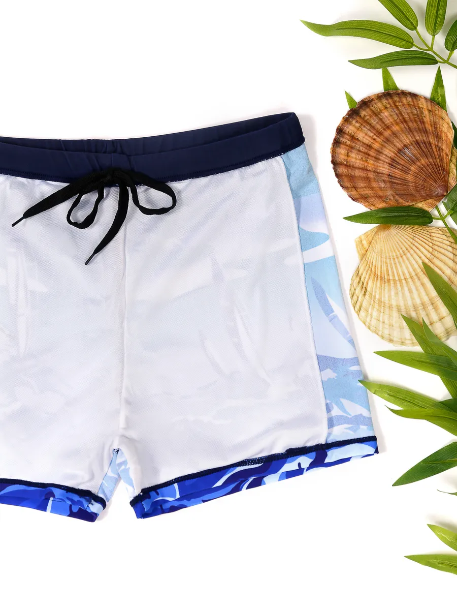 Откройте мир комфорта и стиля с этими детскими купальными плавками-боксёрами, выполненными в классической форме шорт. Эти плавательные шорты, представленные в универсальном синие цвете с принтом, станут идеальным аксессуаром для мальчика любого возраста, от малыша до подростка. Такая плавка подойдёт всем детям и обеспечит им уверенность у воды.