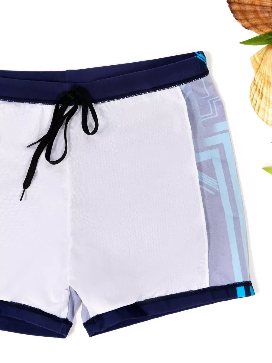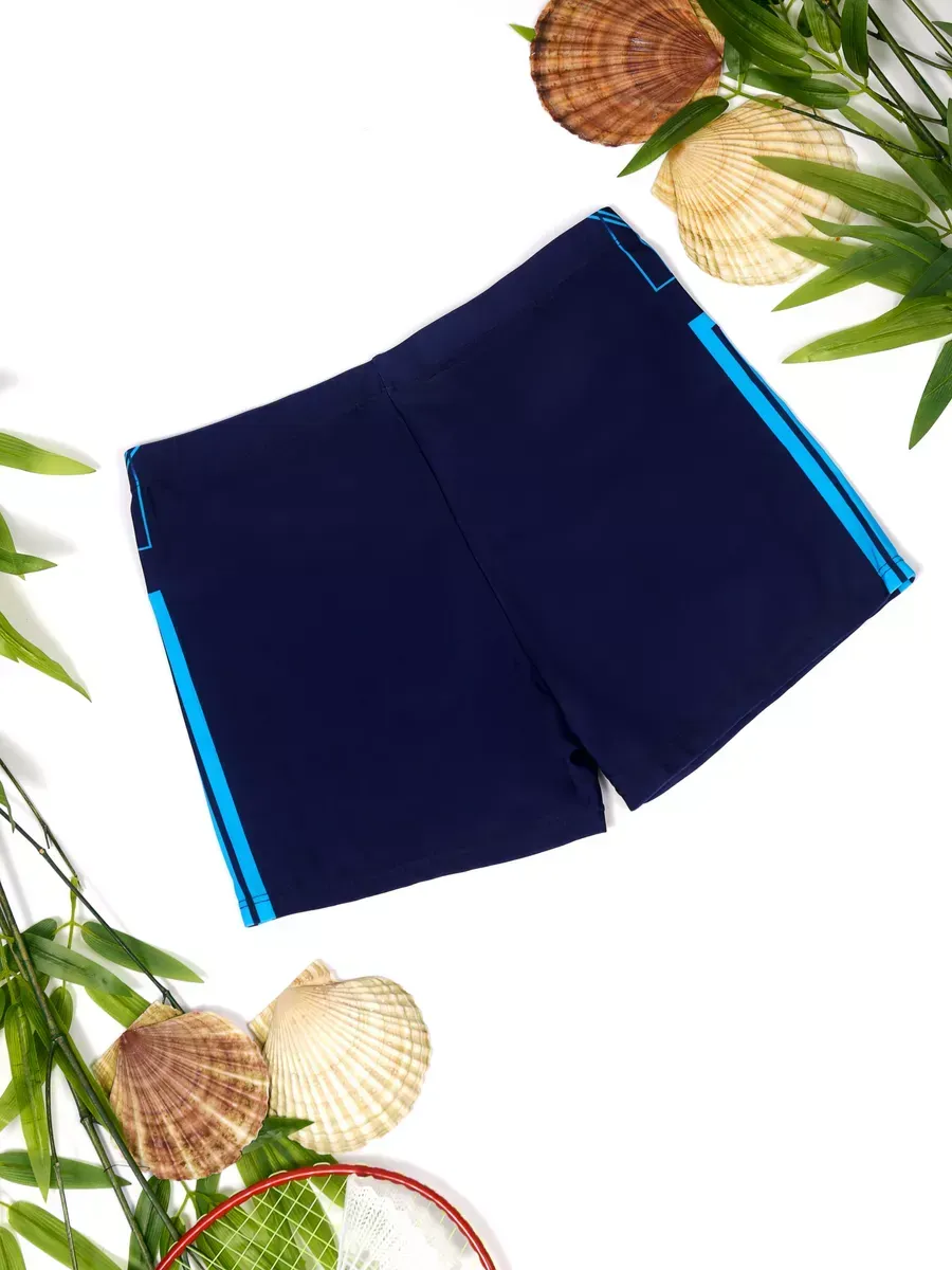 Откройте мир комфорта и стиля с этими детскими купальными плавками-боксёрами, выполненными в классической форме шорт. Эти плавательные шорты, представленные в универсальном синие цвете с контрастными полосами, станут идеальным аксессуаром для мальчика любого возраста, от малыша до подростка. Такая плавка подойдёт всем детям и обеспечит им уверенность у воды.