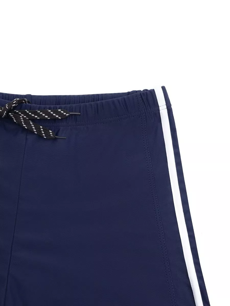 Откройте мир комфорта и стиля с этими детскими купальными плавками-боксёрами, выполненными в классической форме шорт. Эти плавательные шорты, представленные в универсальном синие цвете с три контрастными полосами, станут идеальным аксессуаром для мальчика любого возраста, от малыша до подростка. Такая плавка подойдёт всем детям и обеспечит им уверенность у воды.