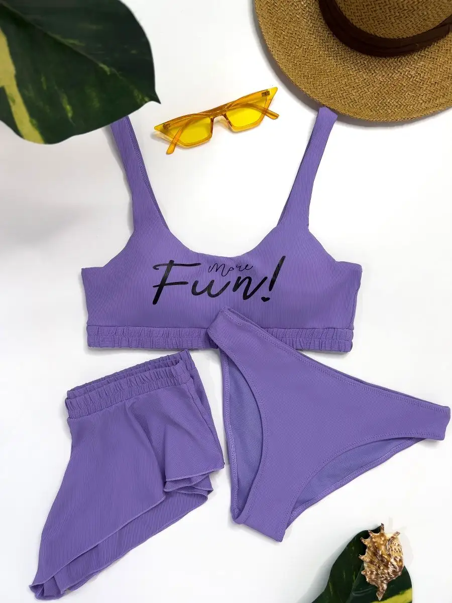 Женский купальник 3 в 1 с шортами и топом Prey From God — универсальный комплект для плавания, моря, бассейна и активного отдыха. В набор входят три предмета: топ, шорты и классические трусики. Можно носить вместе или по отдельности, создавая удобные образы для пляжа, спорта или отдыха.