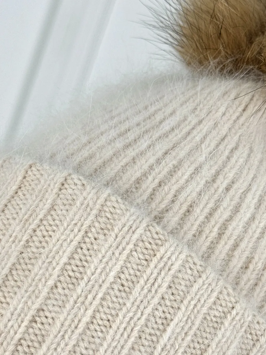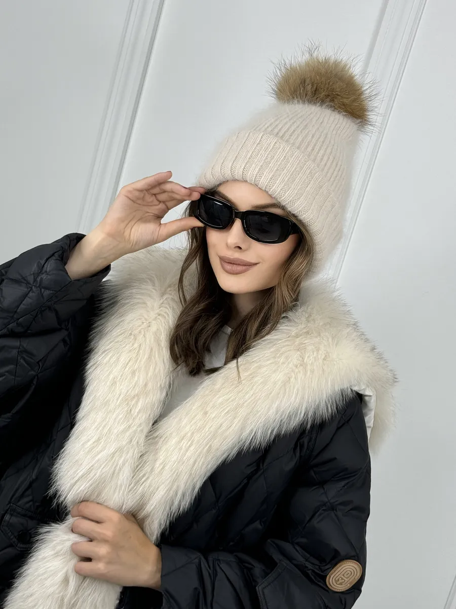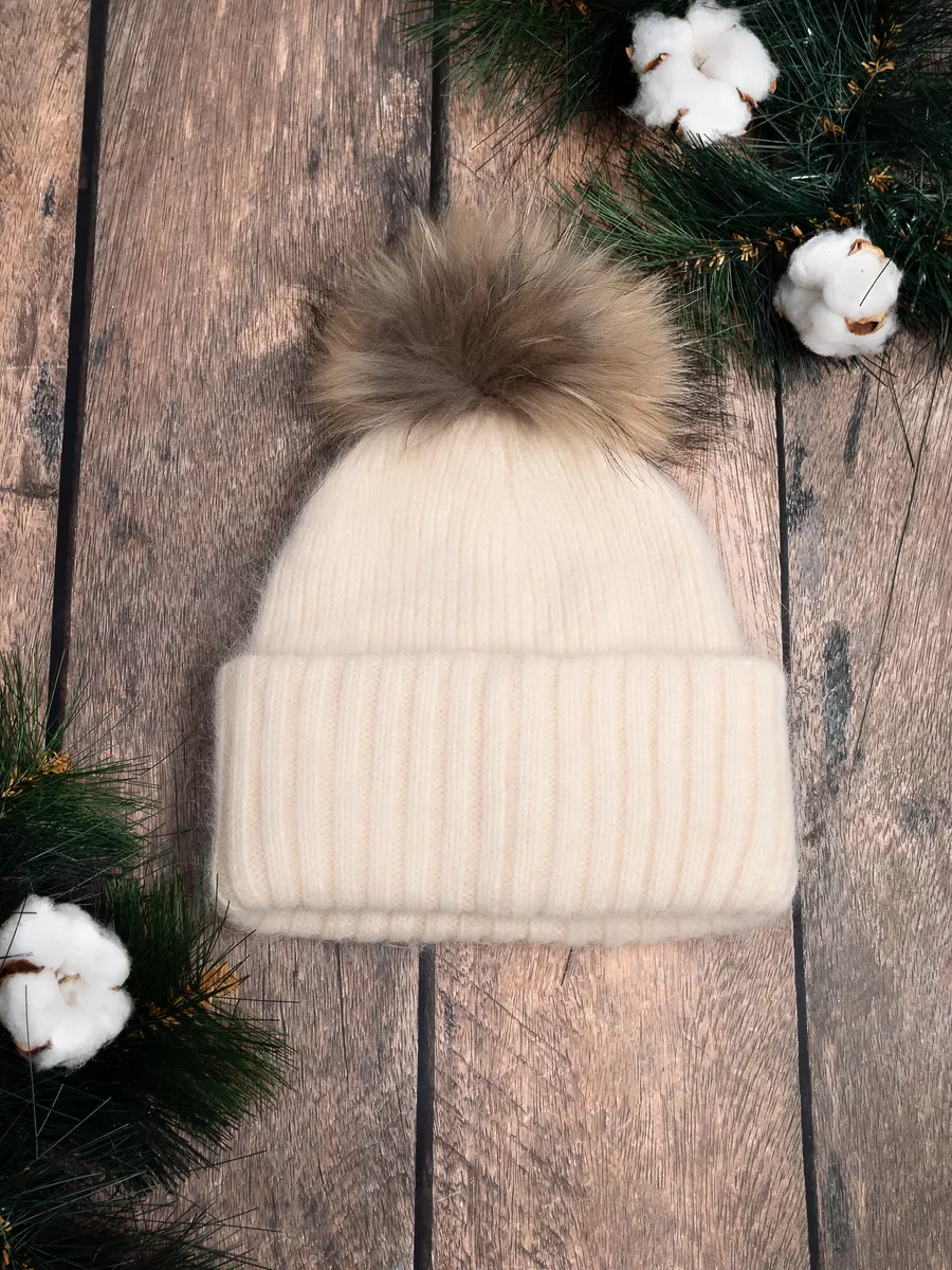 Шапка женская ангора с меховым помпоном — стильная зимняя модель, сочетающая тепло, мягкость и элегантность.