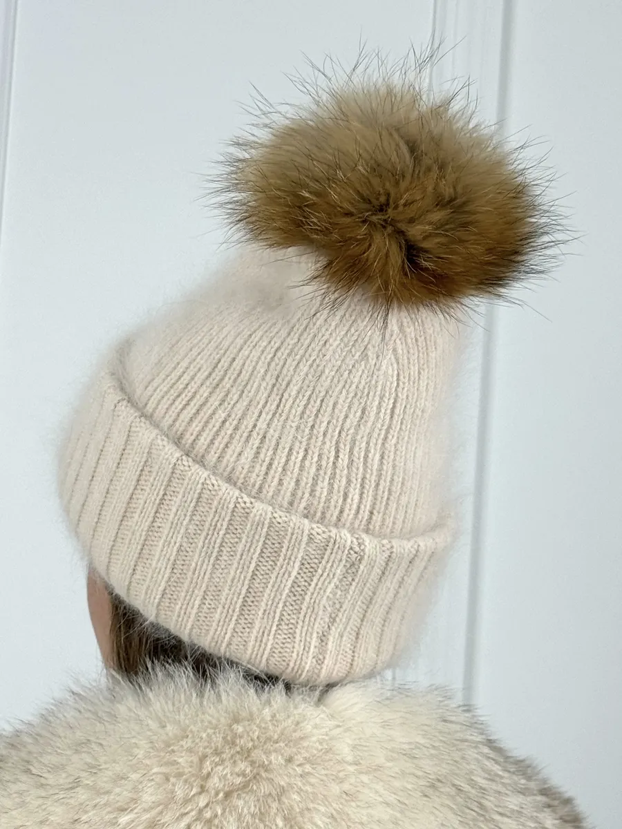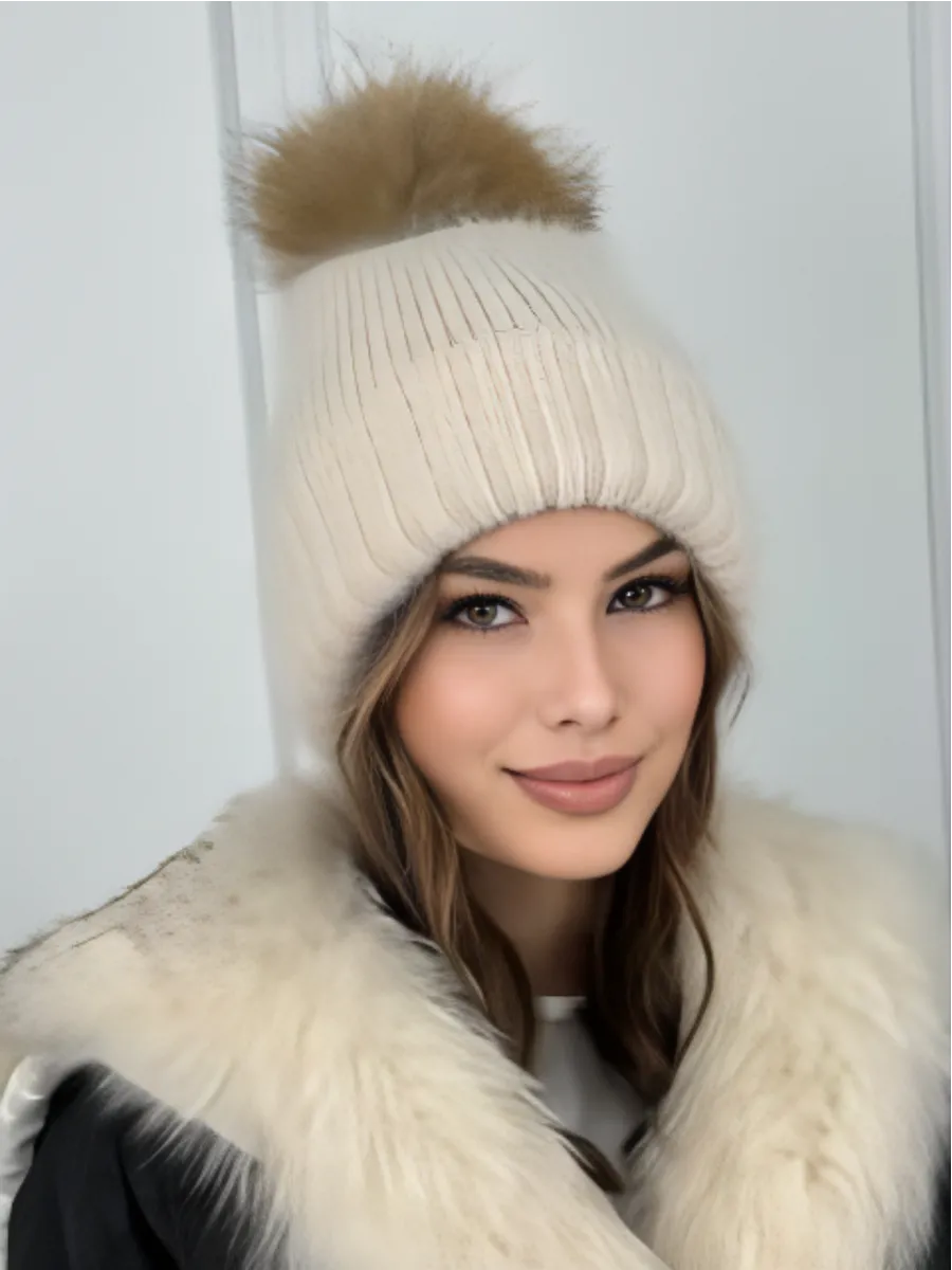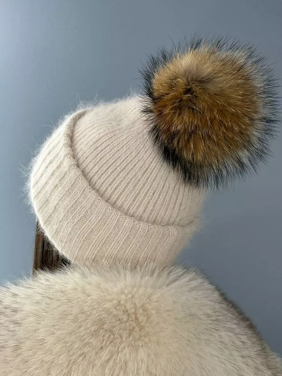 шапка с помпоном шерстяная меховая