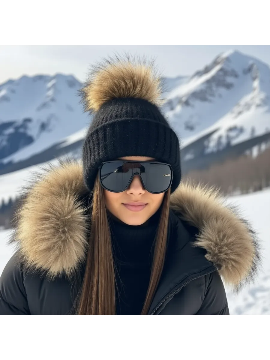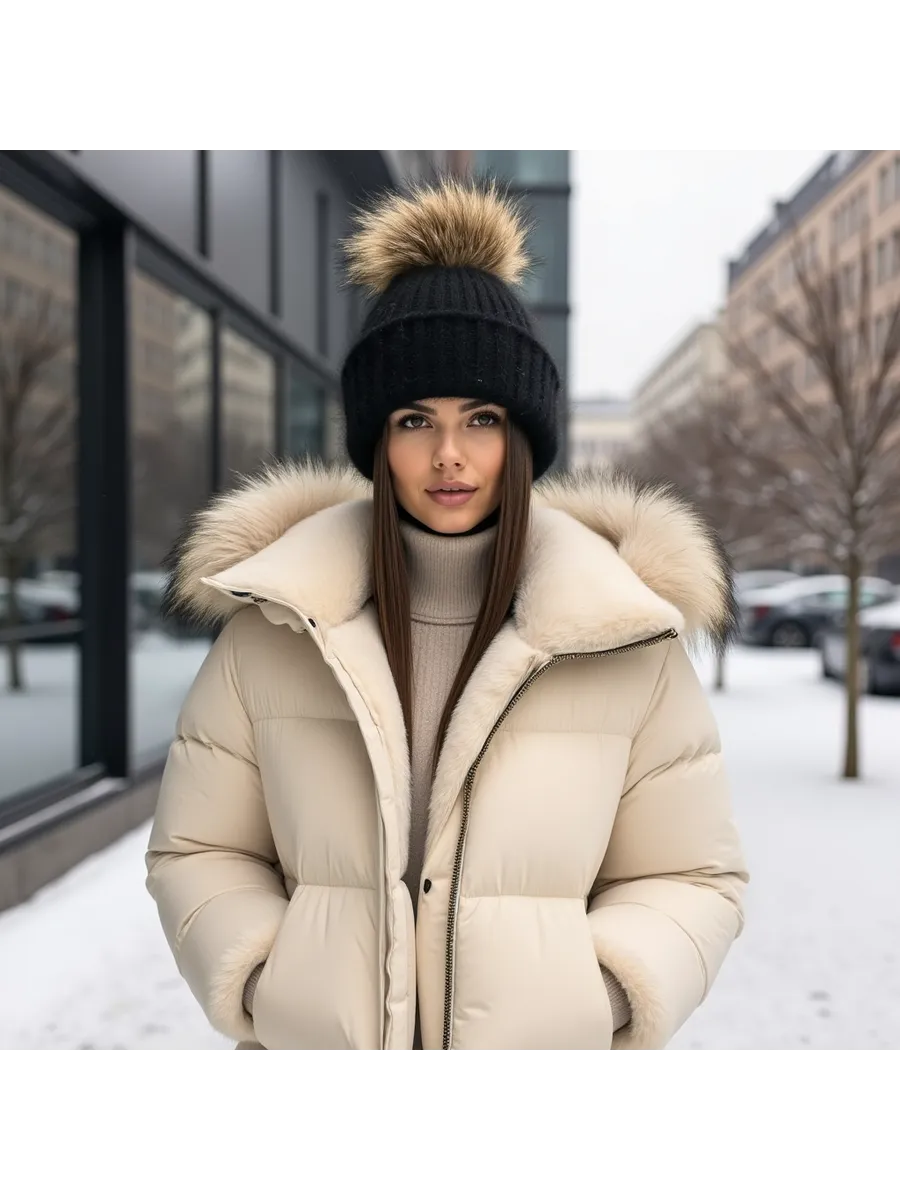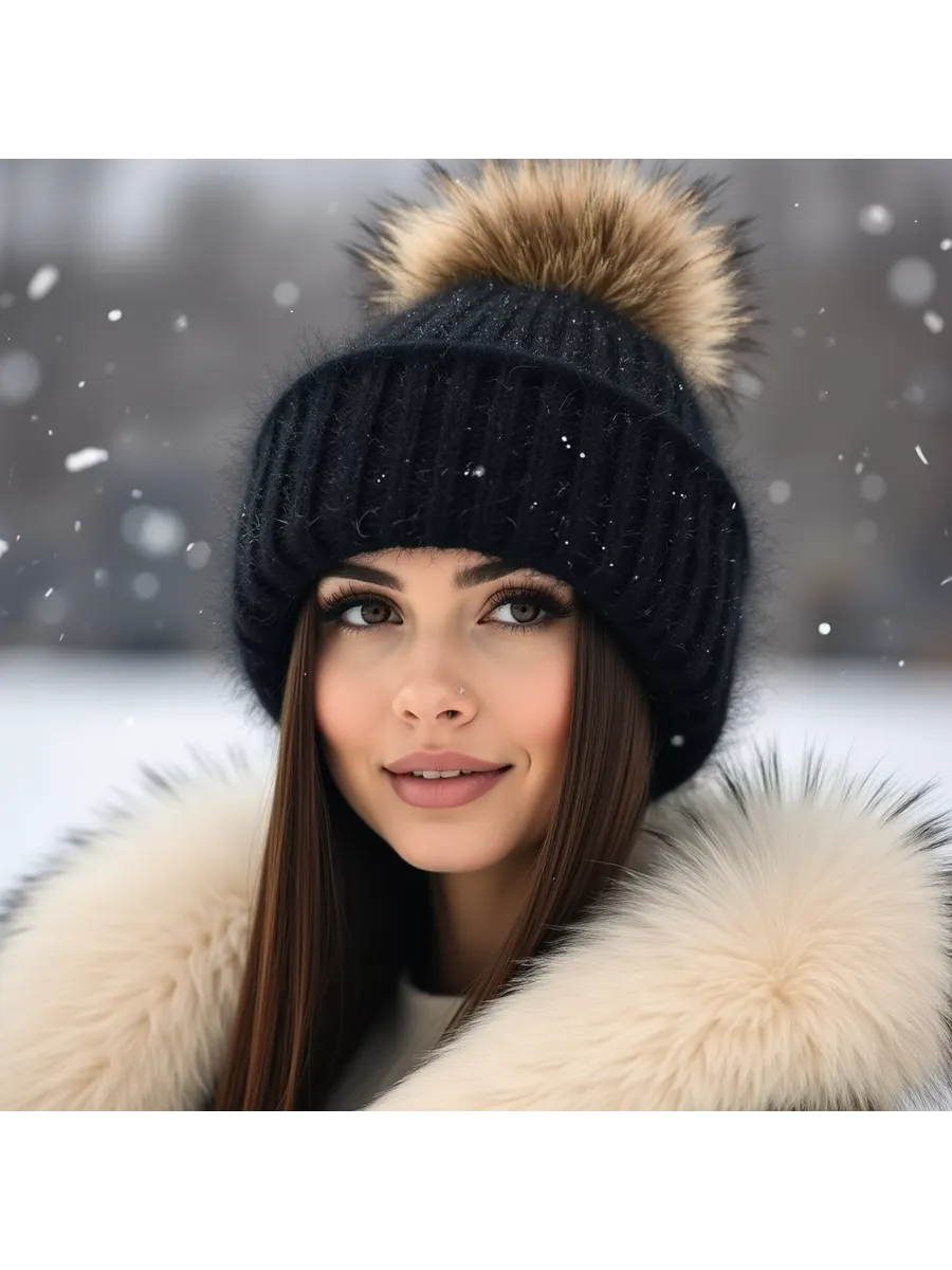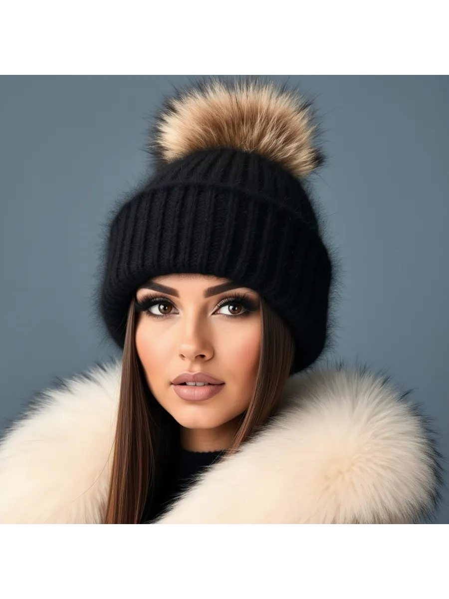 Пушистый меховой помпон придаёт образу игривости и женственности, делая шапку идеальным аксессуаром для зимнего сезона.
