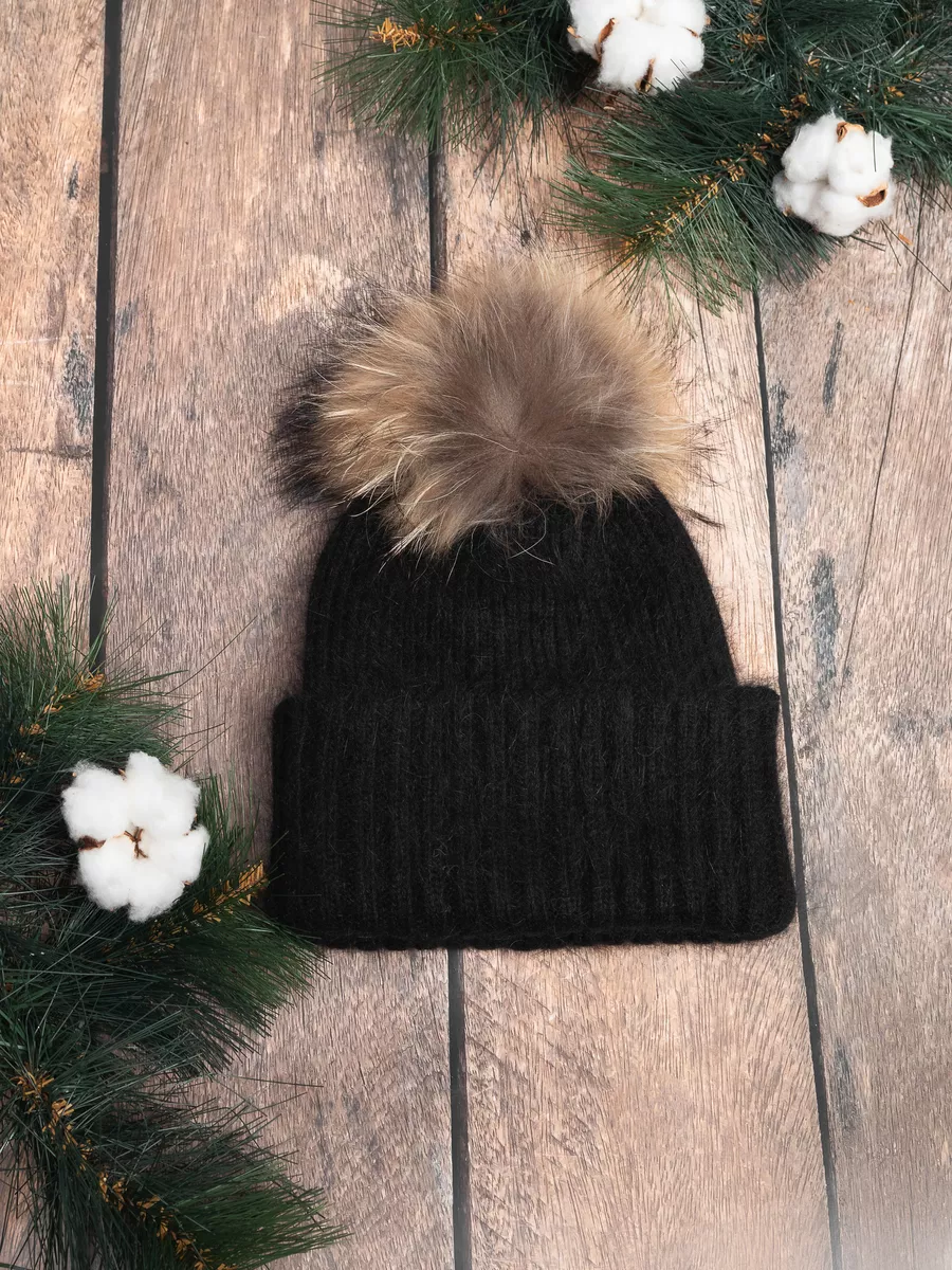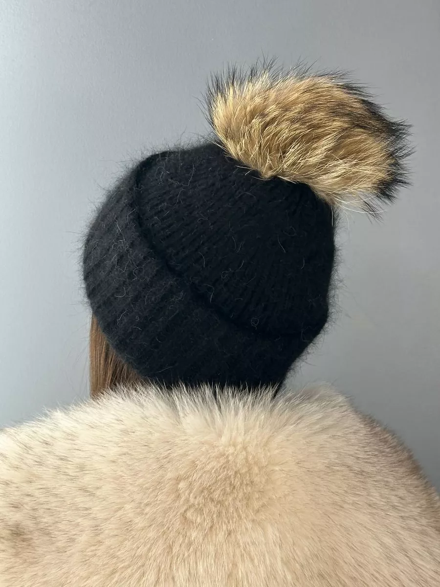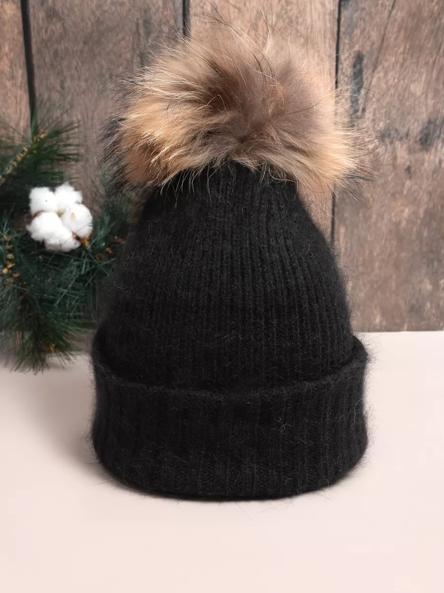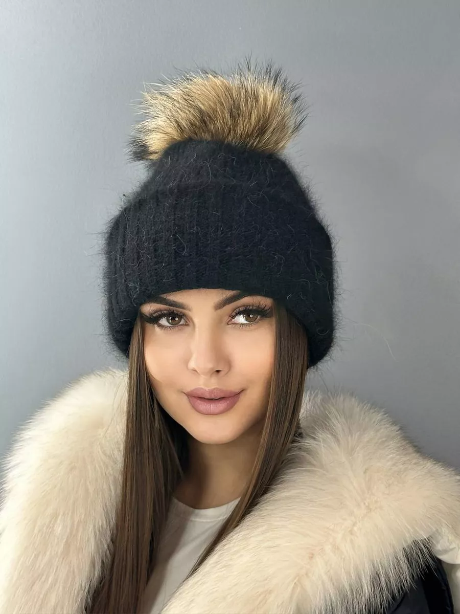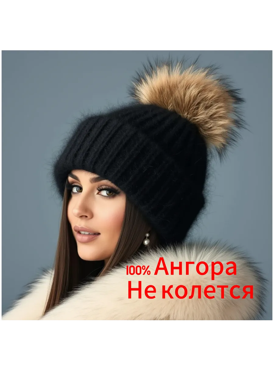 Шапка женская ангора с меховым помпоном — стильная зимняя модель, сочетающая тепло, мягкость и элегантность.