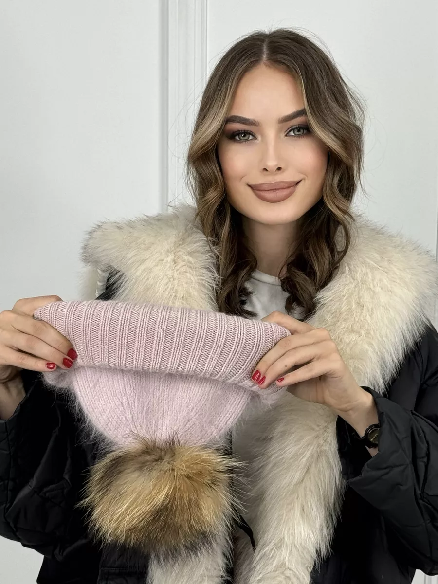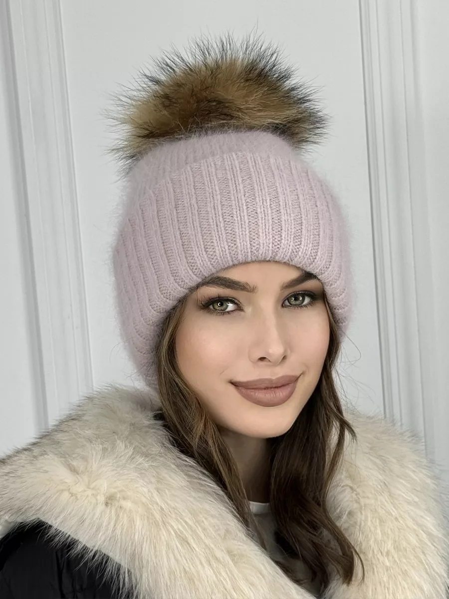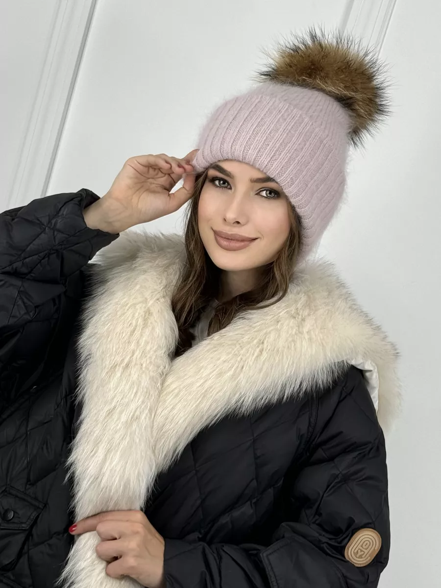 Шапка женская ангора с меховым помпоном — стильная зимняя модель, сочетающая тепло, мягкость и элегантность.