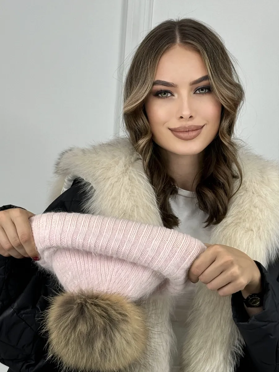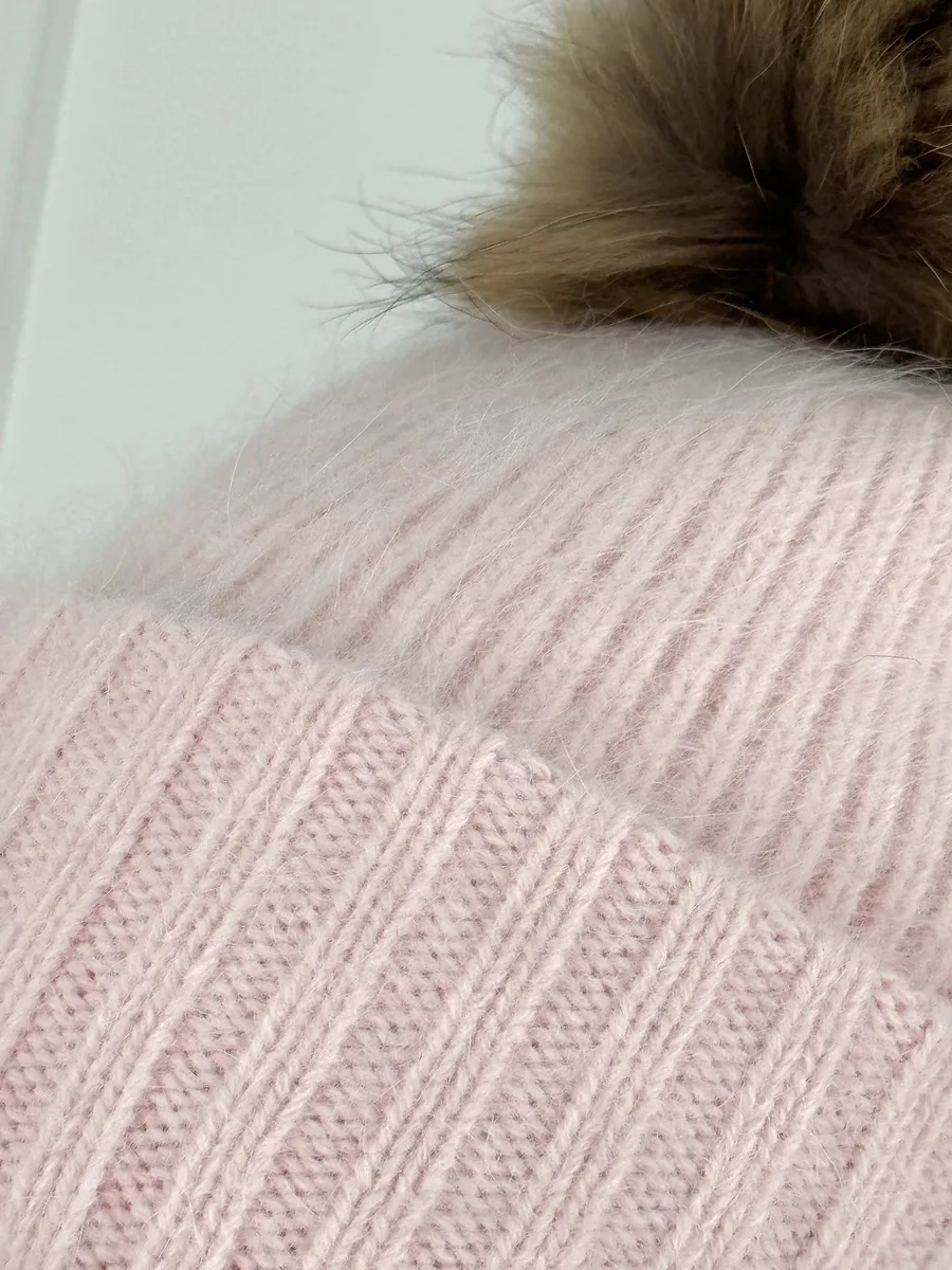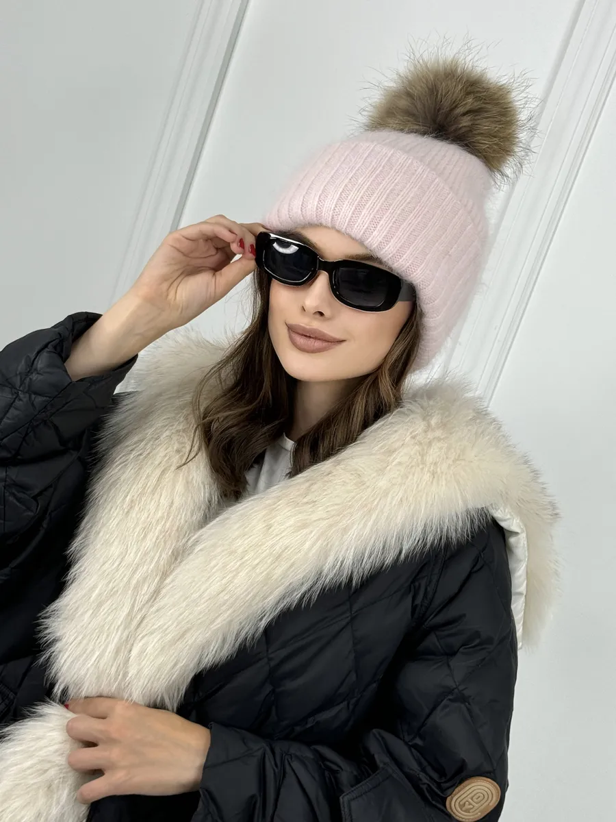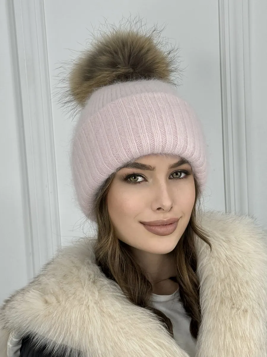 Шапка женская ангора с меховым помпоном — стильная зимняя модель, сочетающая тепло, мягкость и элегантность.