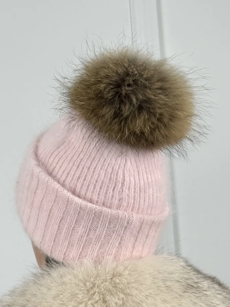 шапка с помпоном пушистая
