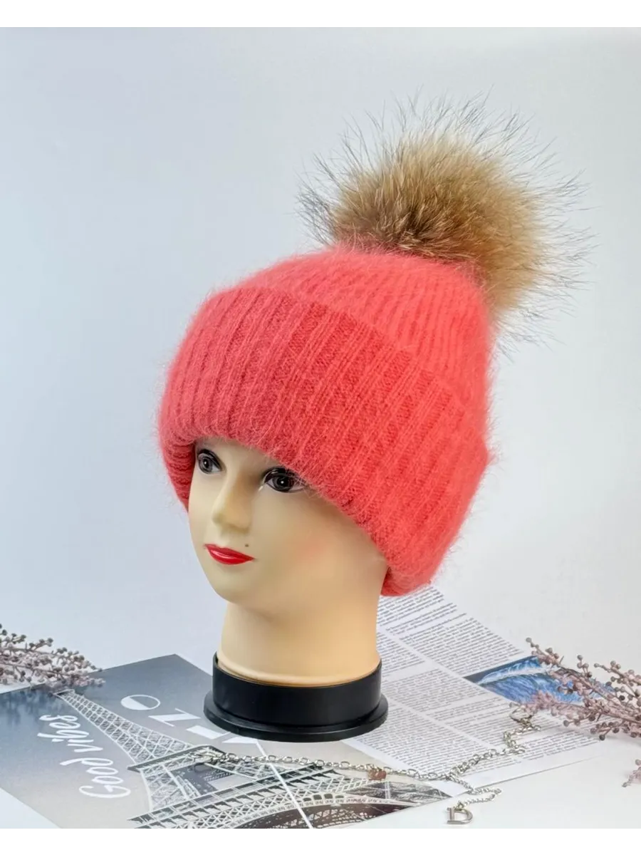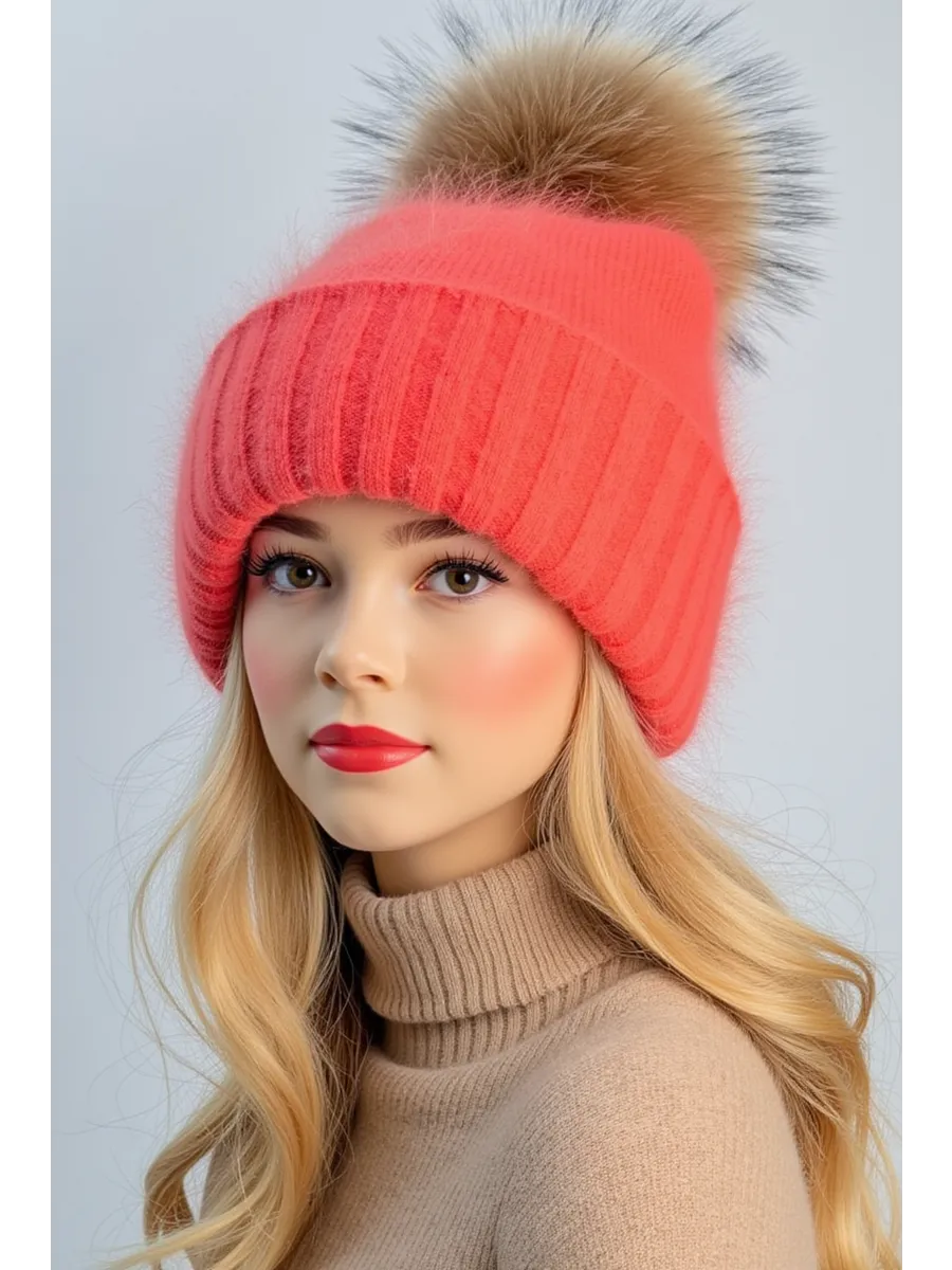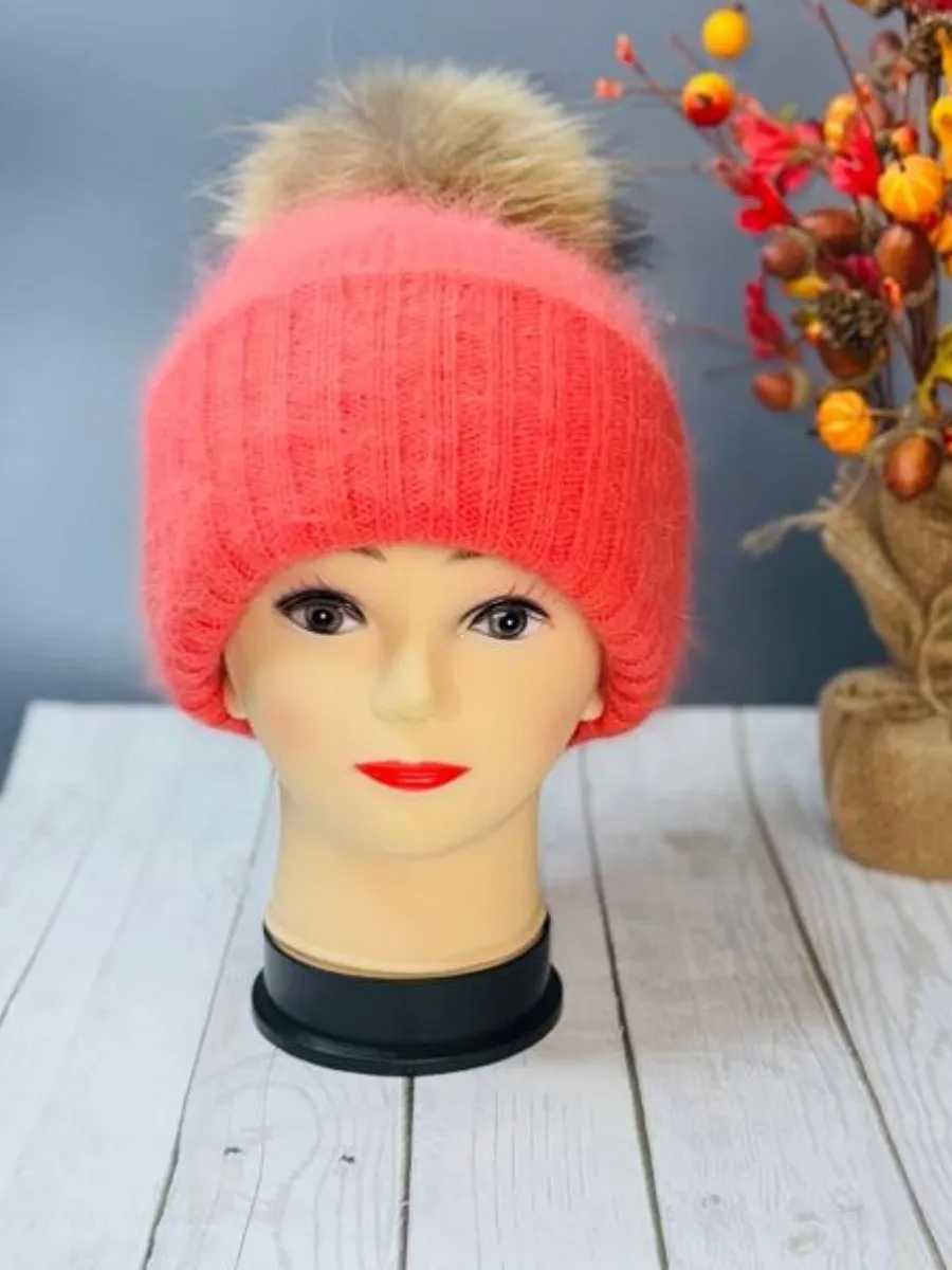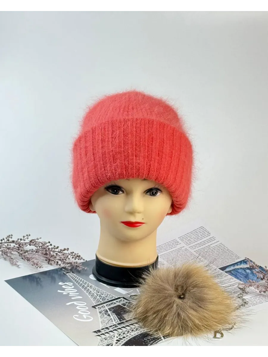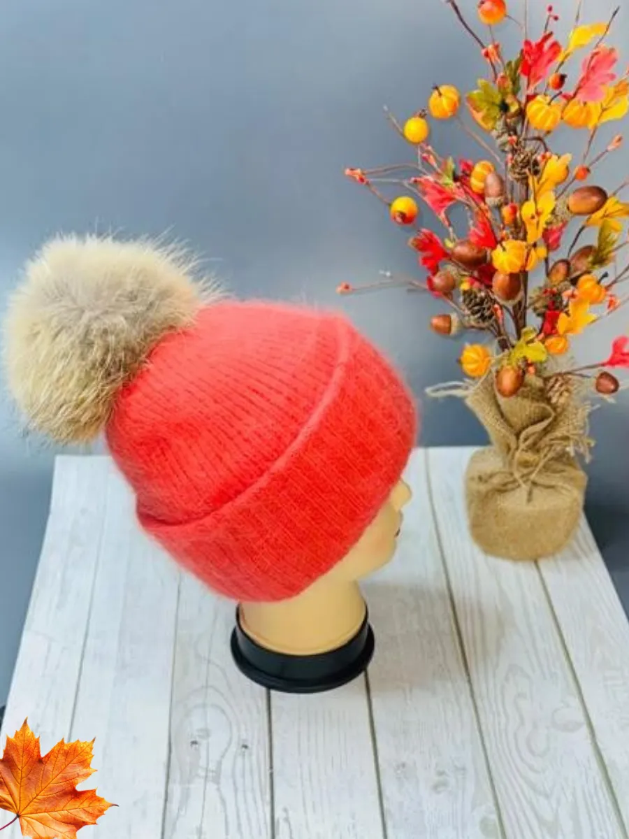 Шапка женская ангора с меховым помпоном — стильная зимняя модель, сочетающая тепло, мягкость и элегантность.