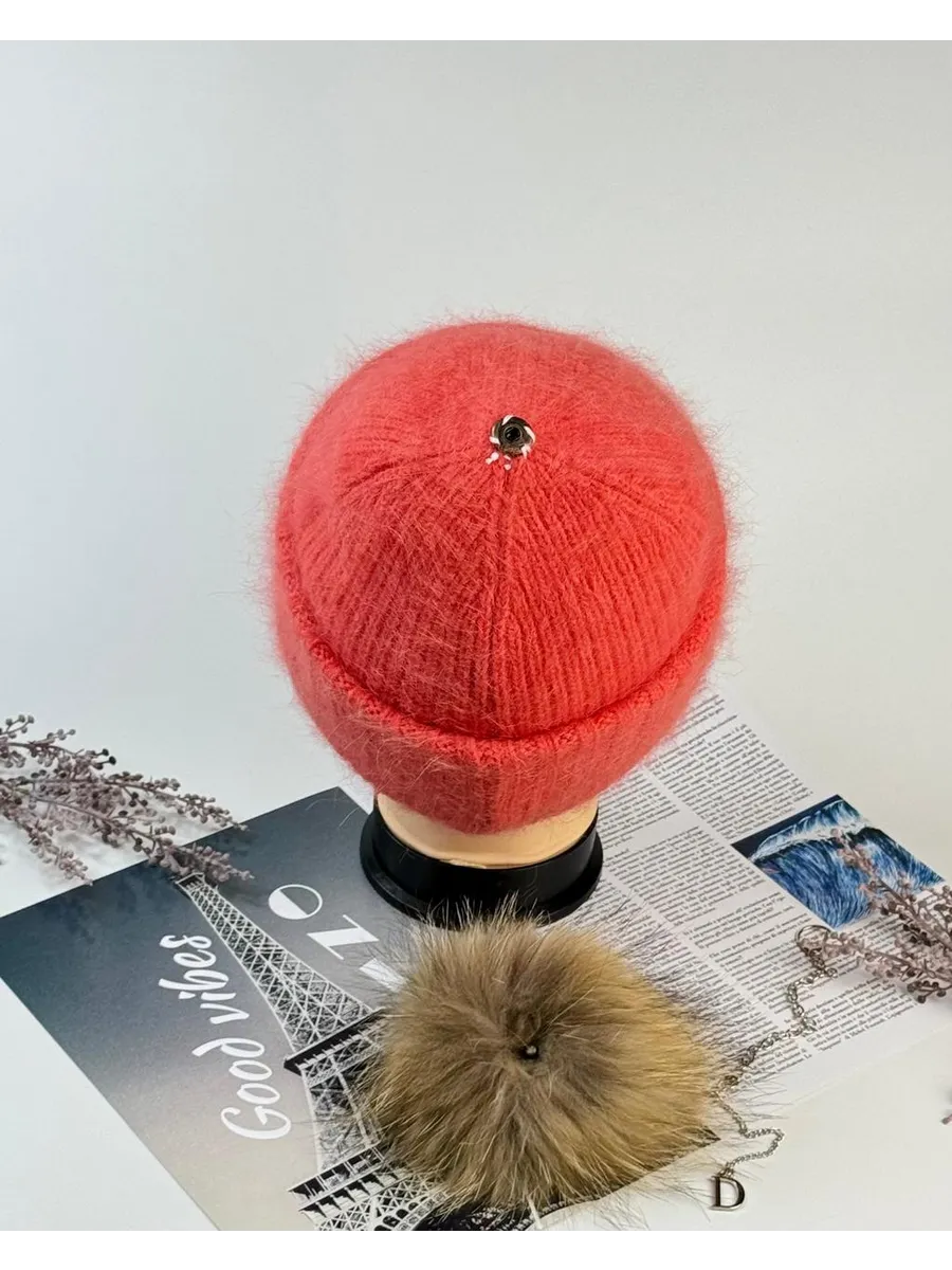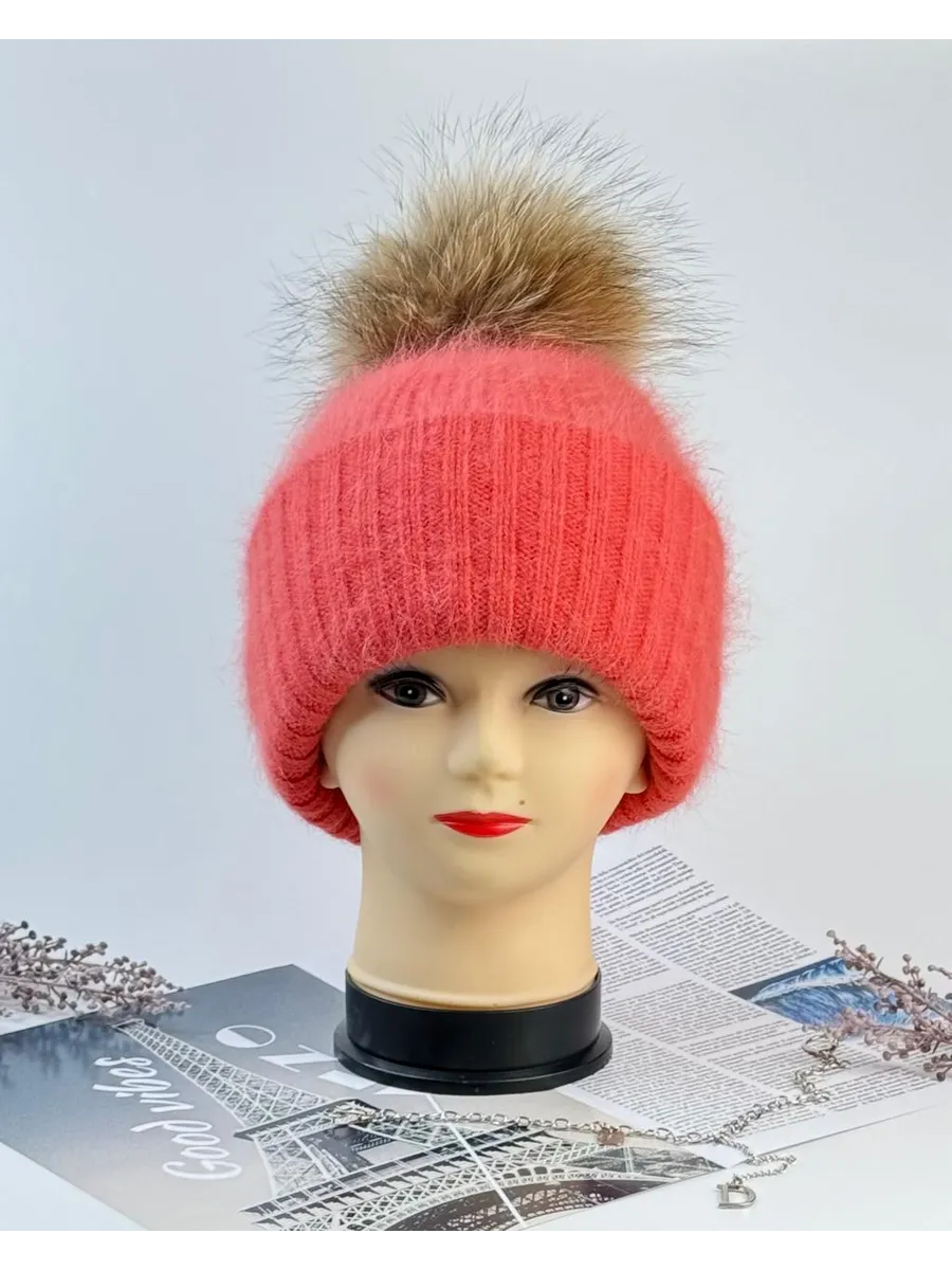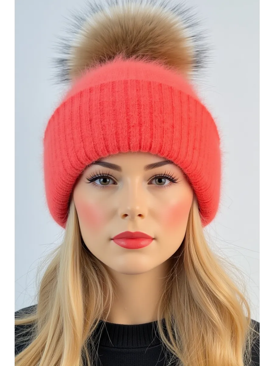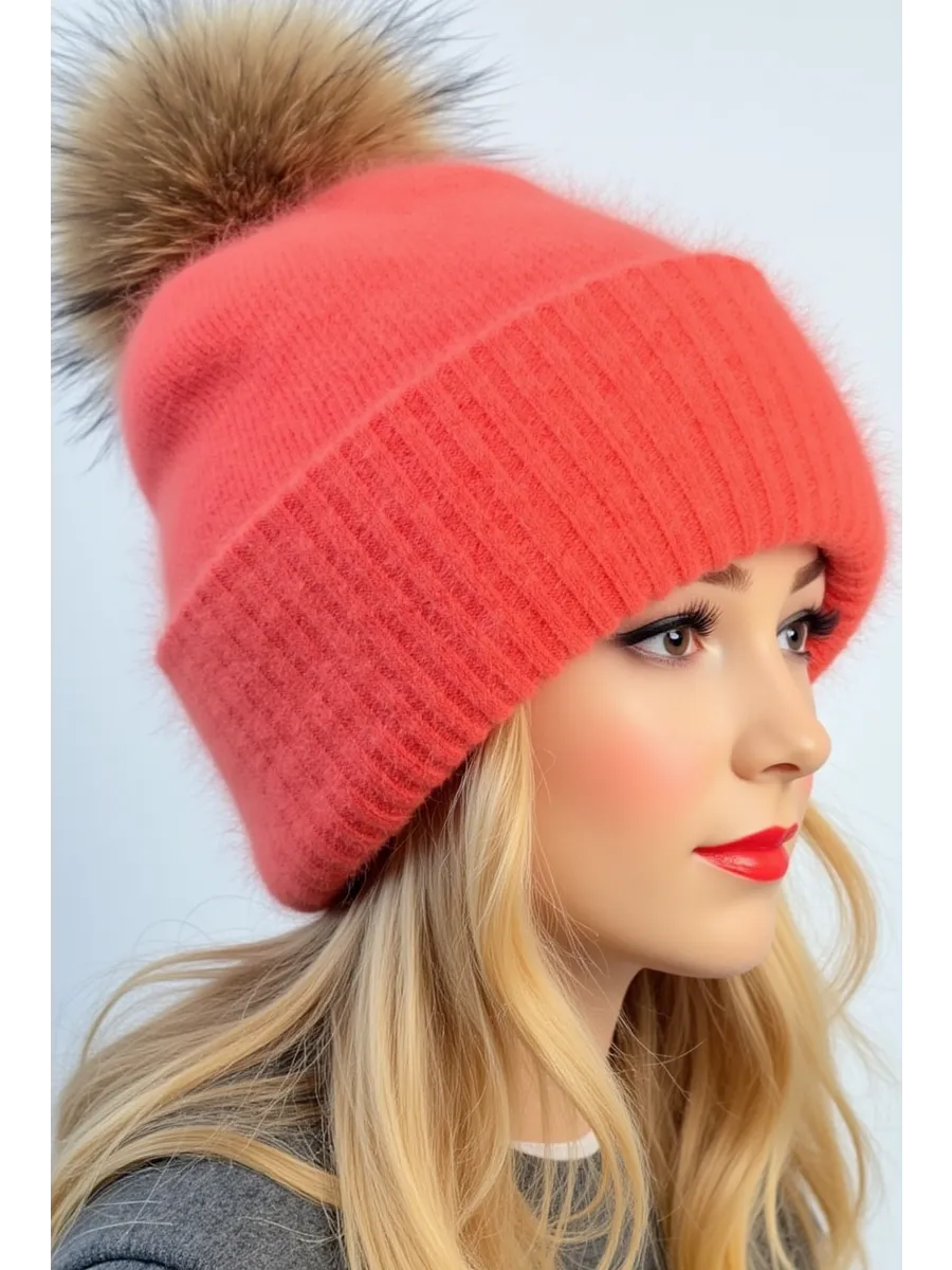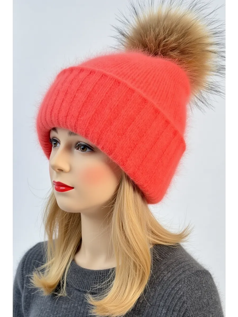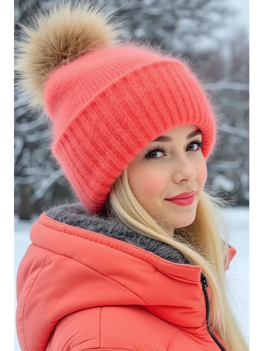 Шапка женская ангора с меховым помпоном — стильная зимняя модель, сочетающая тепло, мягкость и элегантность.