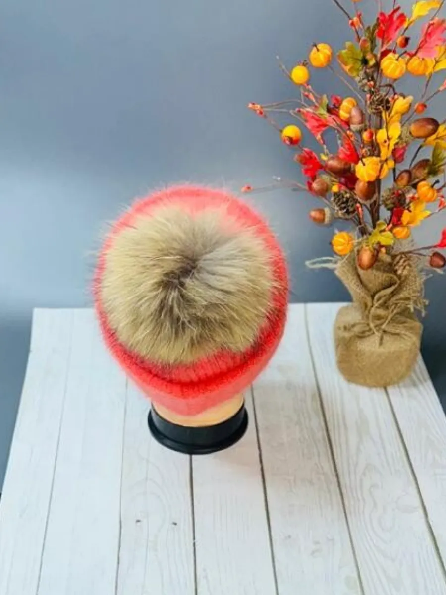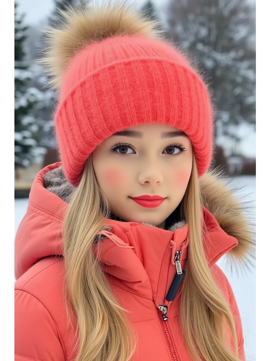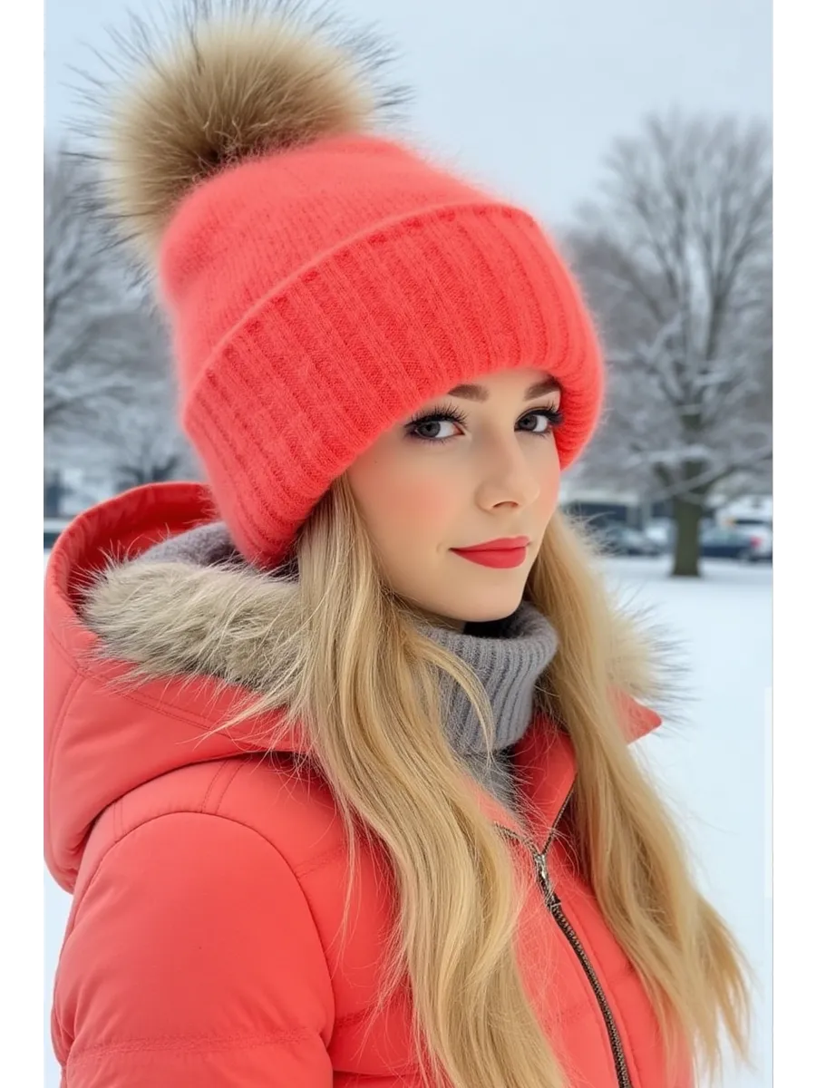 Пушистый меховой помпон придаёт образу игривости и женственности, делая шапку идеальным аксессуаром для зимнего сезона.