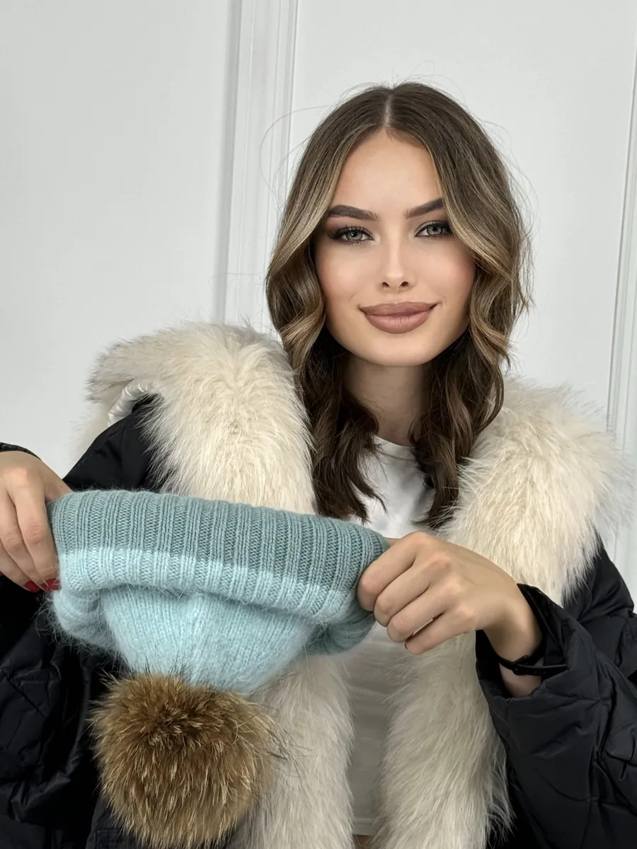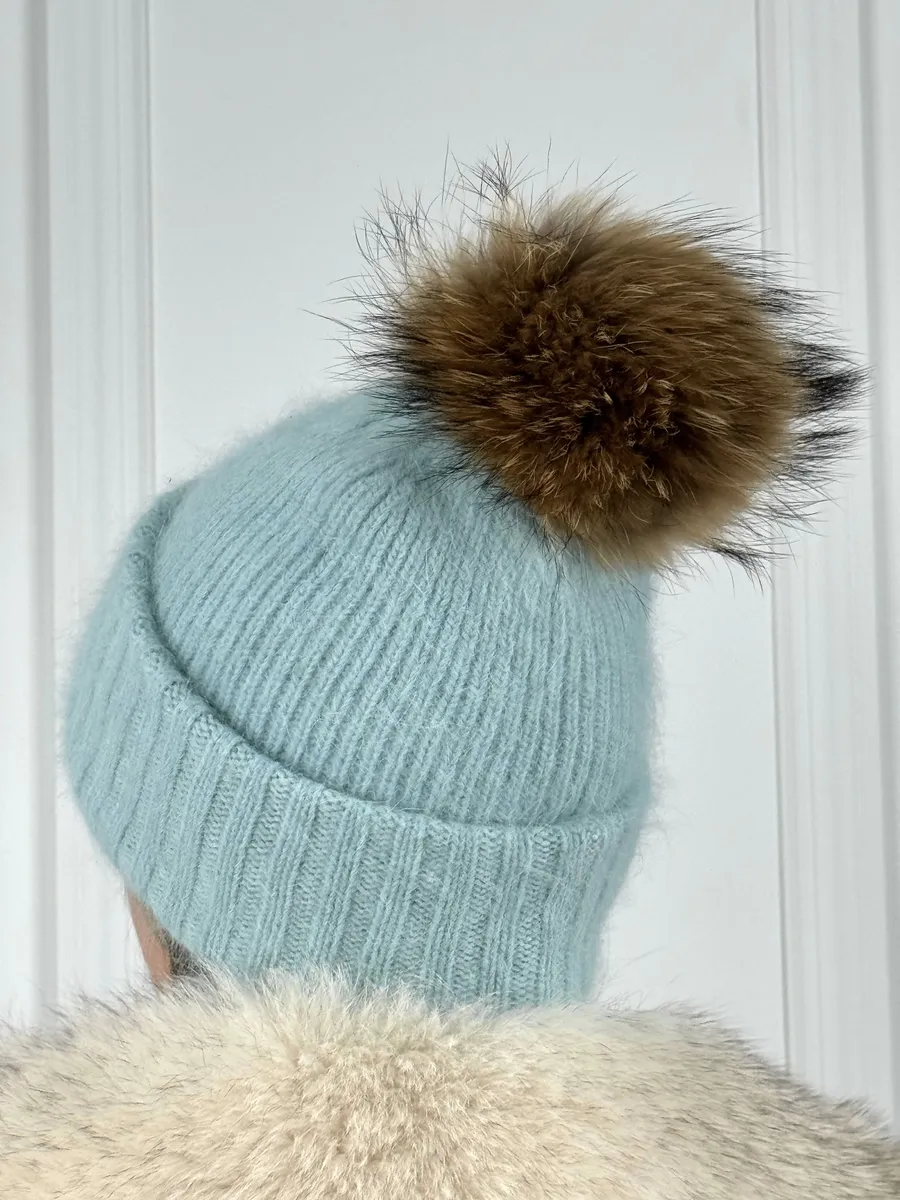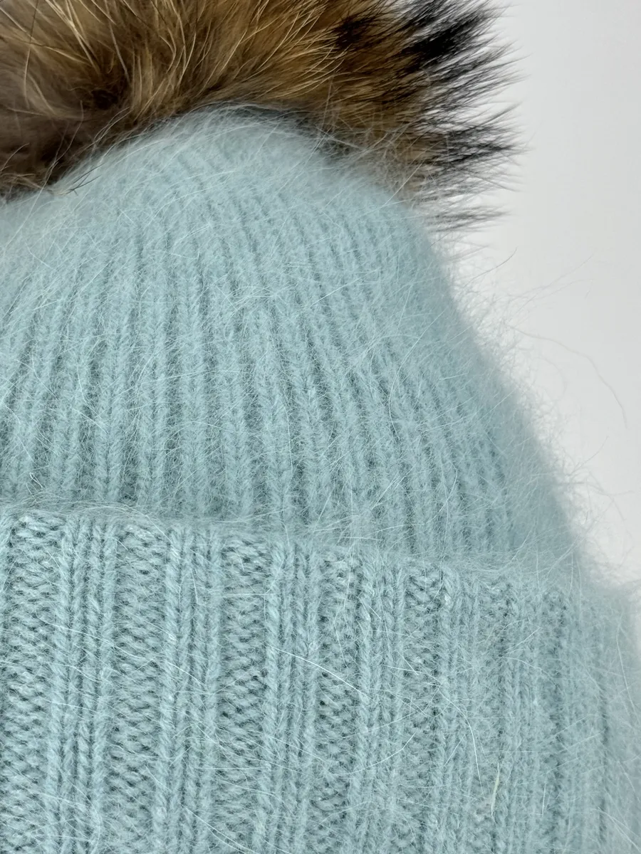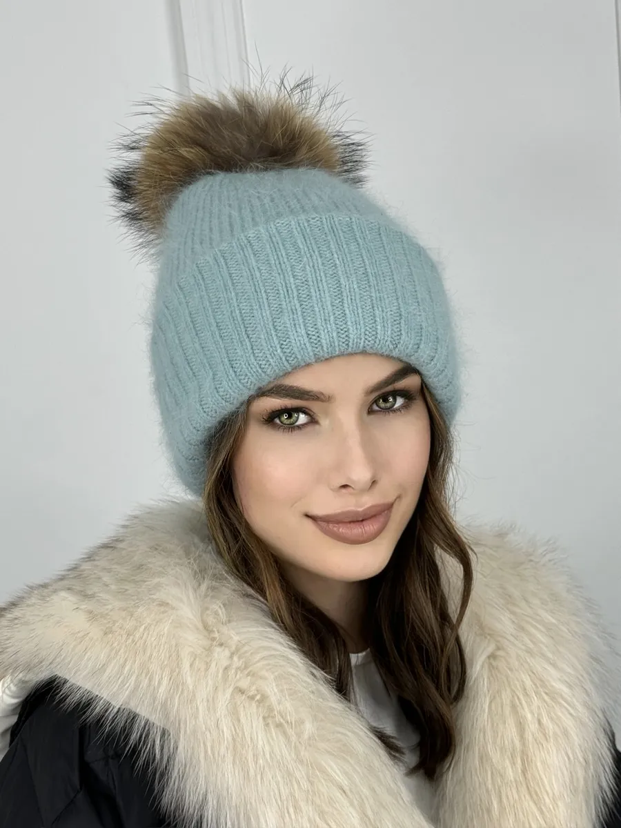 Шапка женская ангора с меховым помпоном — стильная зимняя модель, сочетающая тепло, мягкость и элегантность.