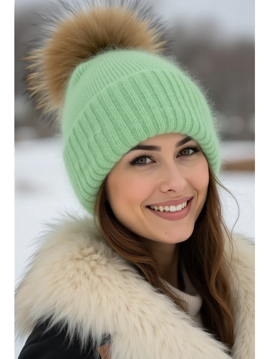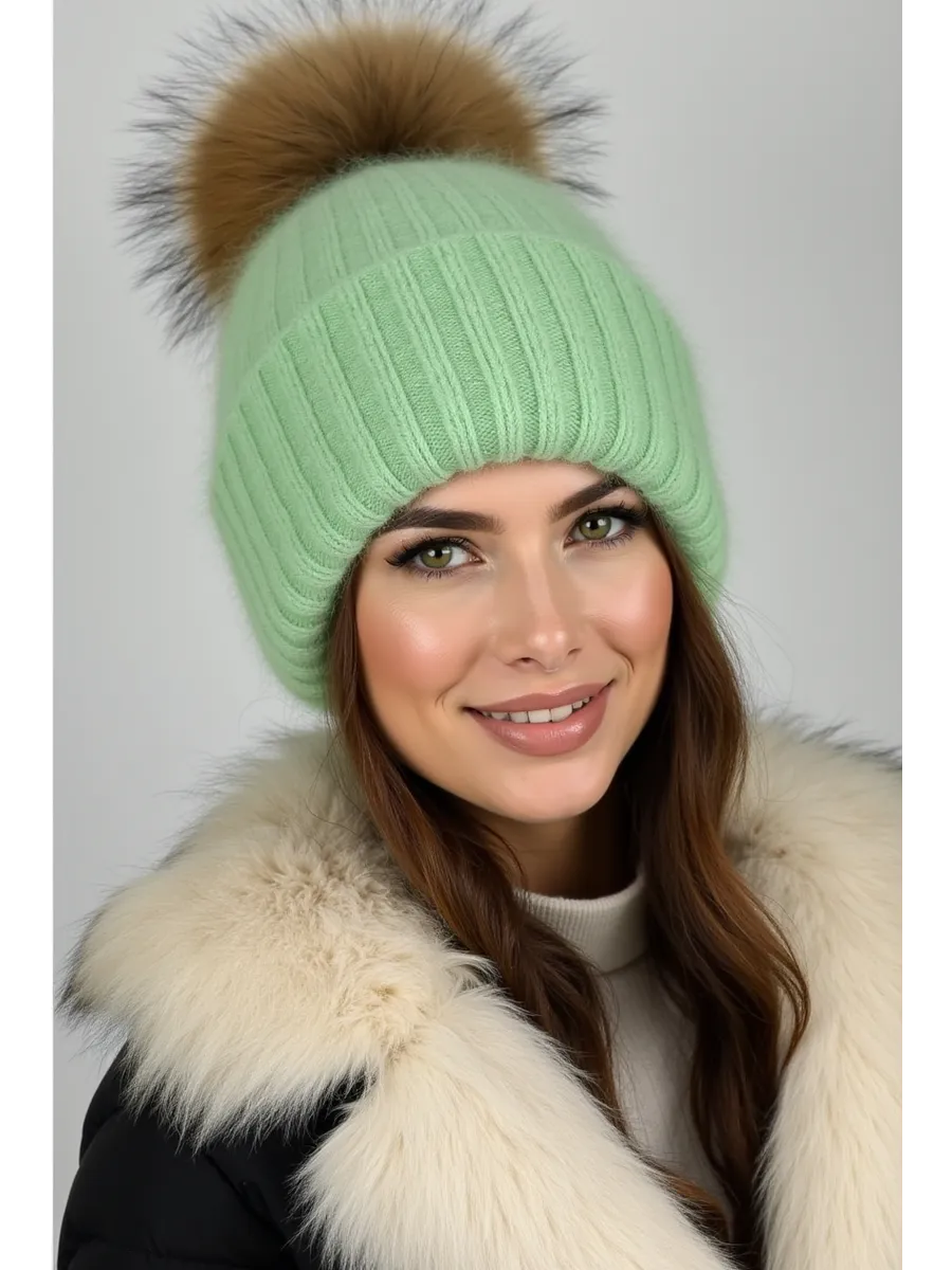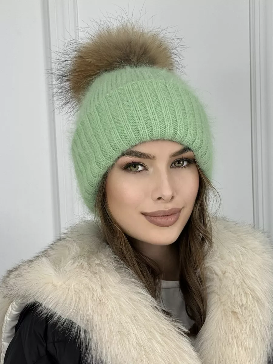 Шапка женская ангора с меховым помпоном — стильная зимняя модель, сочетающая тепло, мягкость и элегантность.