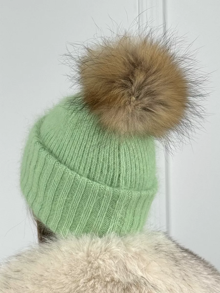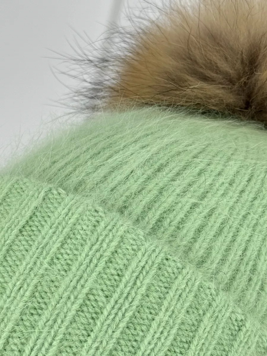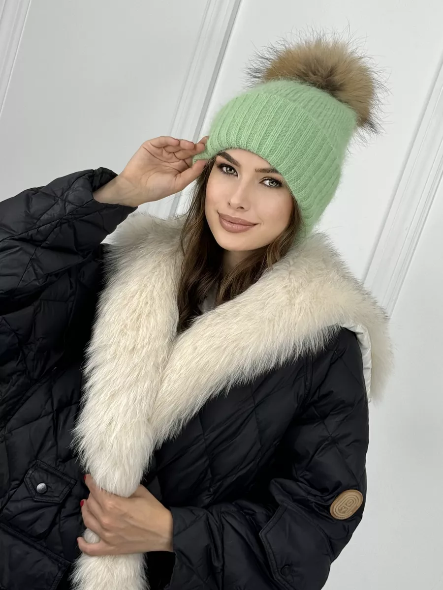 Шапка женская ангора с меховым помпоном — стильная зимняя модель, сочетающая тепло, мягкость и элегантность.