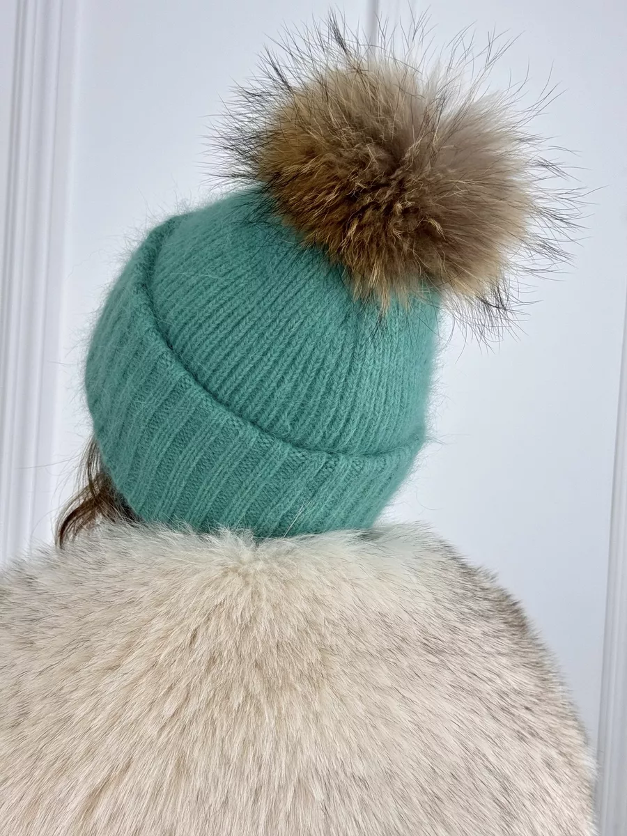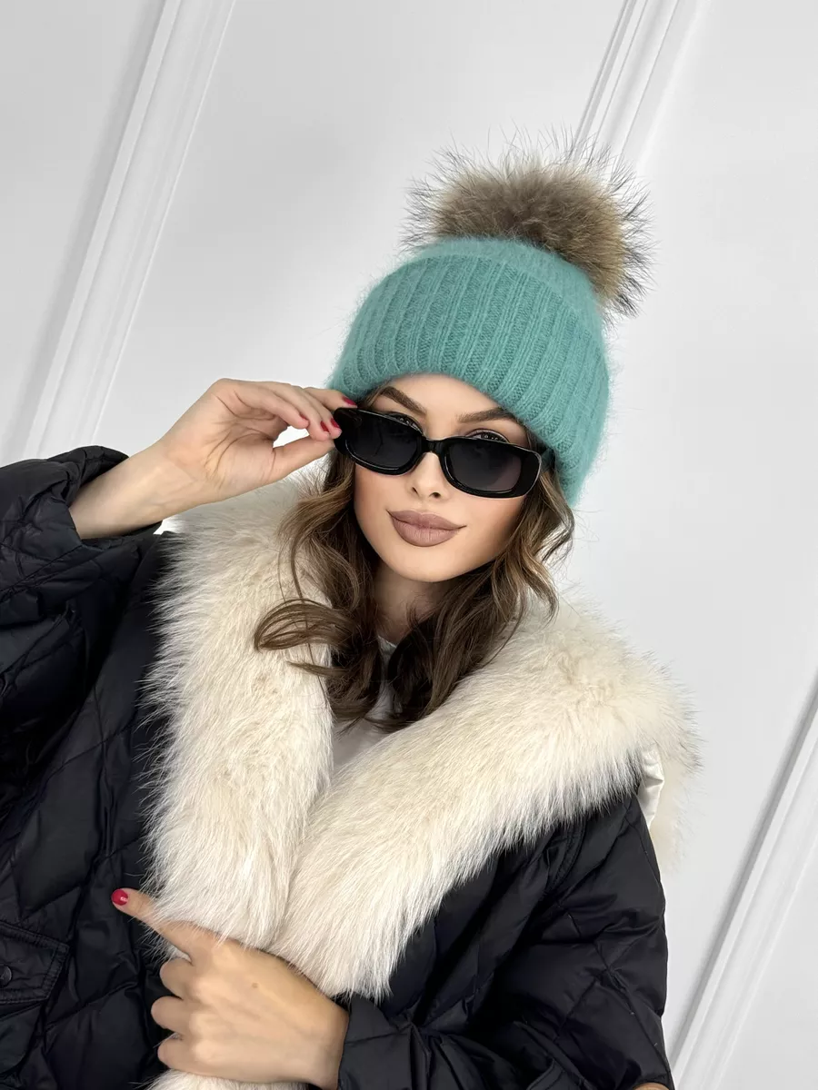 Шапка женская ангора с меховым помпоном — стильная зимняя модель, сочетающая тепло, мягкость и элегантность.