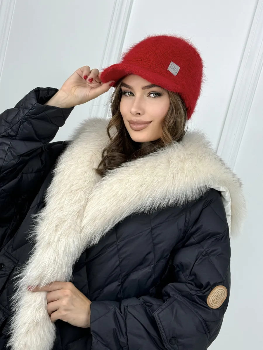 кепка зимняя с козырьком пушистая