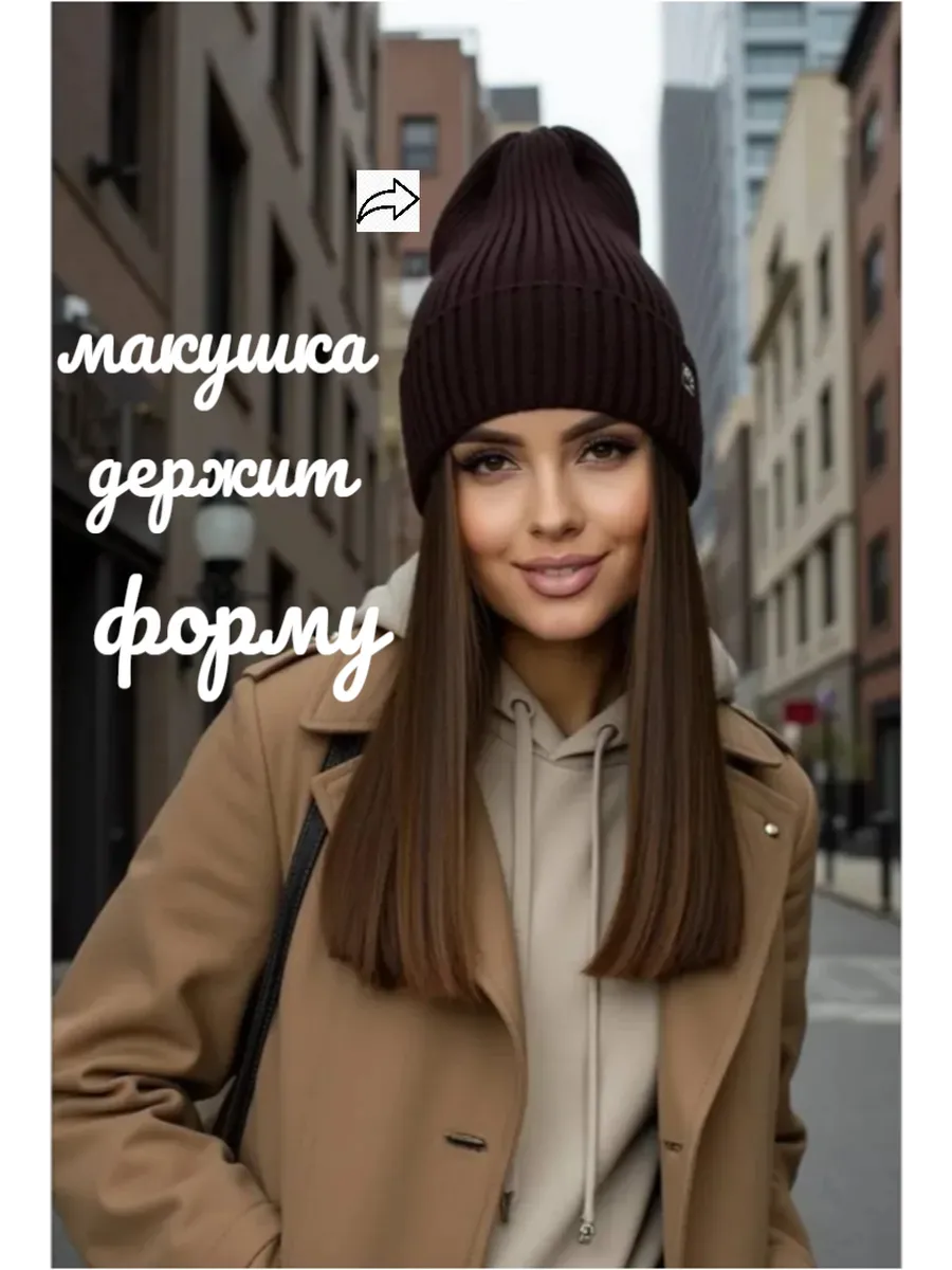 В ее состав входит шерсть и кашемир, что обеспечивает комфорт и тепло без лишнего утяжеления. Плотная вязкa в крупной рубчик-лапше придает модели объемную форму тыковки или луковки с широким подворотом.