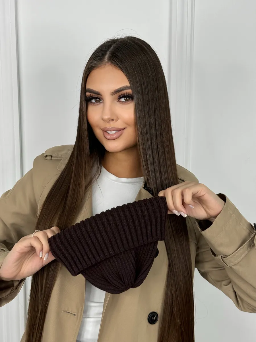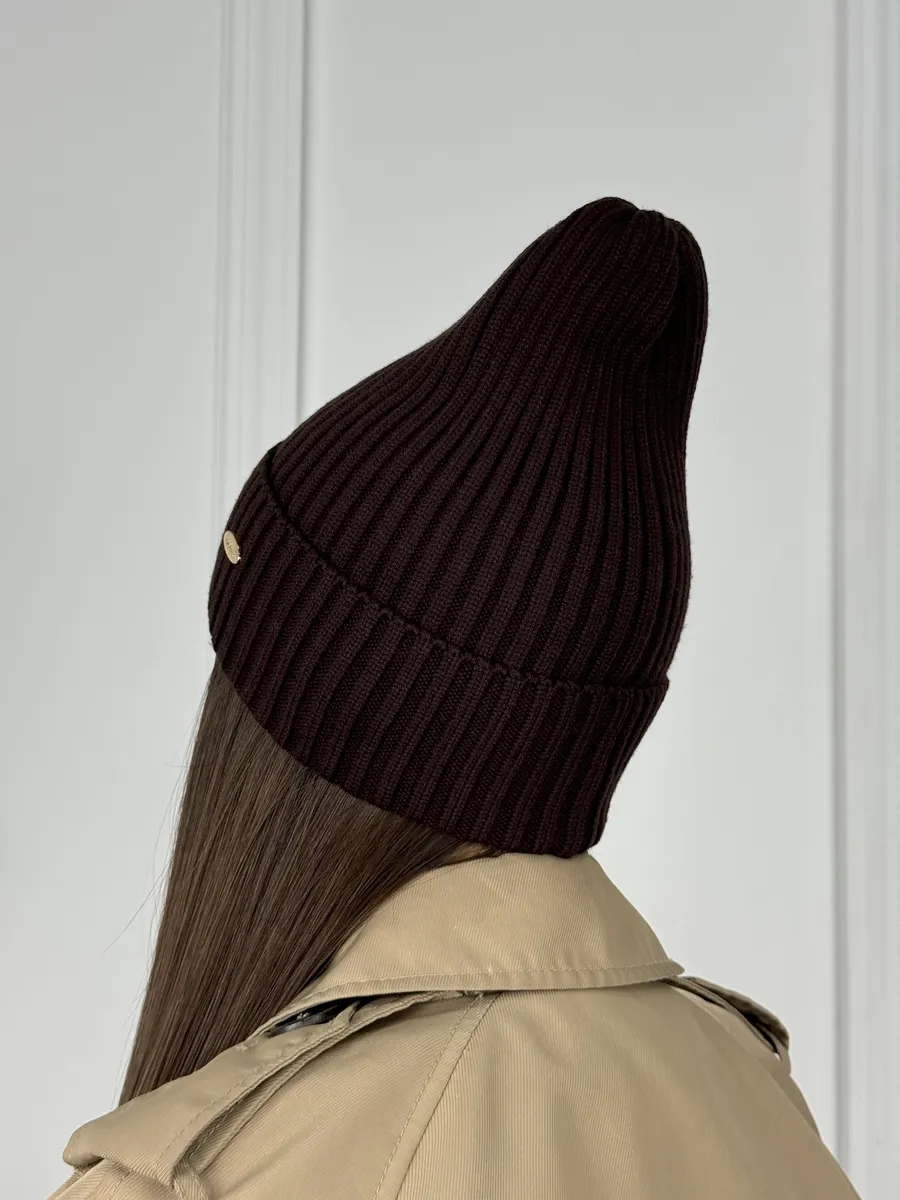 Представляем вам стильную и модную женскую шапку бини – универсальный головной убор, идеально подходящий для осенне-весеннего сезона и даже для легкой зимней погоды. Эта вязаная шапочка, выполненная из высококачественной турецкой пряжи, представлена в глубоком коричн оттенке горького шоколад.
