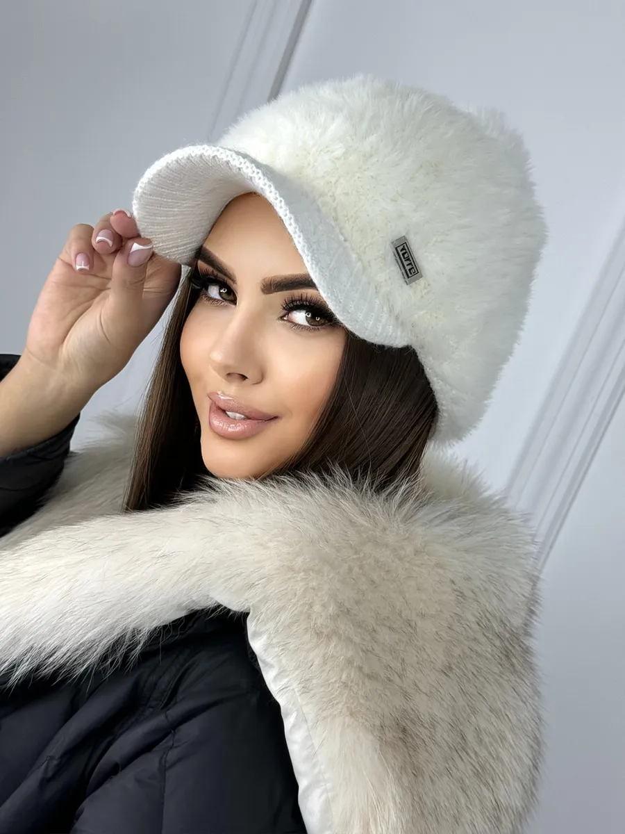 кепка зимняя с козырьком пушистая