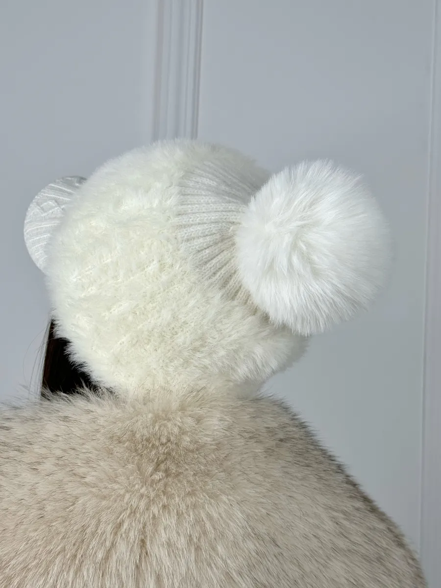 шапка с помпоном зимняя теплая,