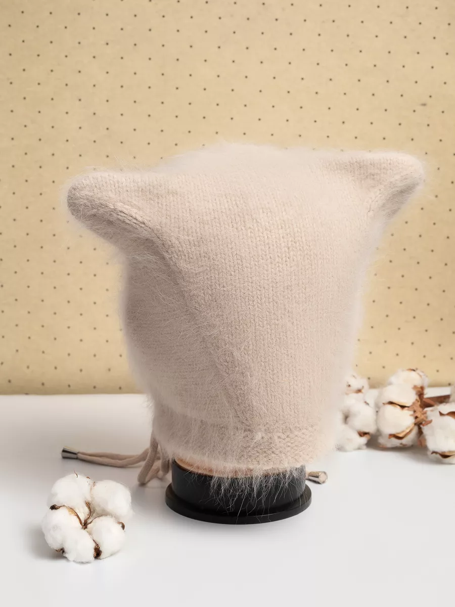 чепчик ангора с ушками пушистая натуральная