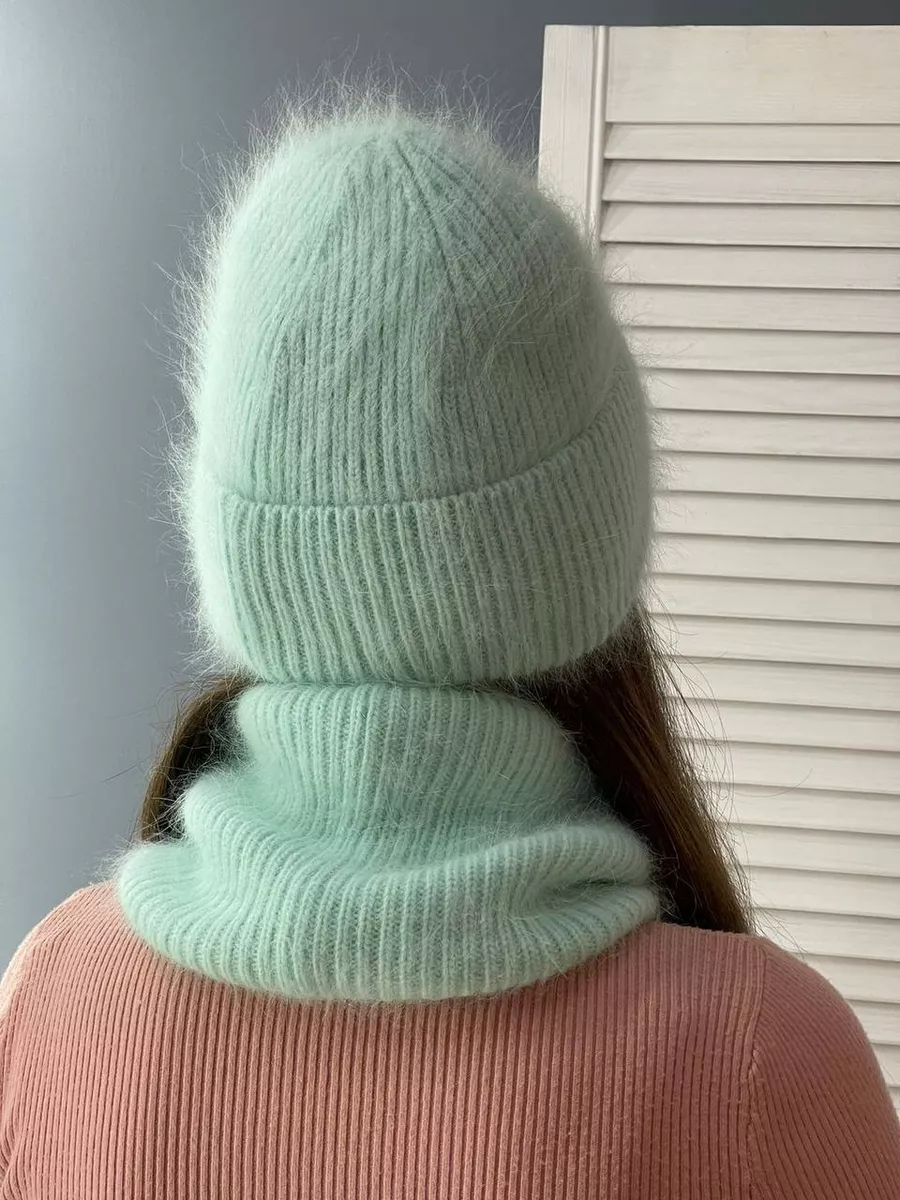 головной аксессуар из ангорки теплый шапка снуд и варежки