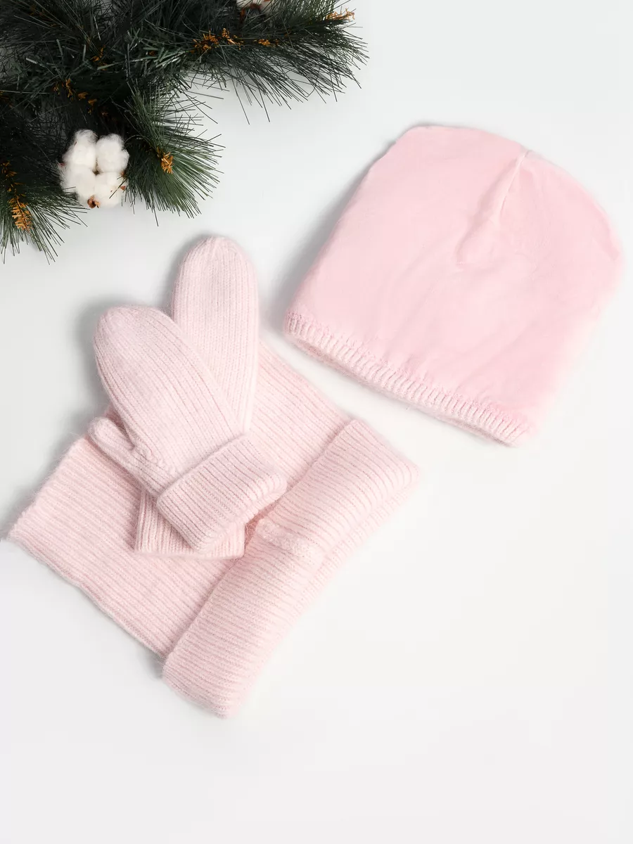 набор 3 в 1 шапка снуд и варежки,